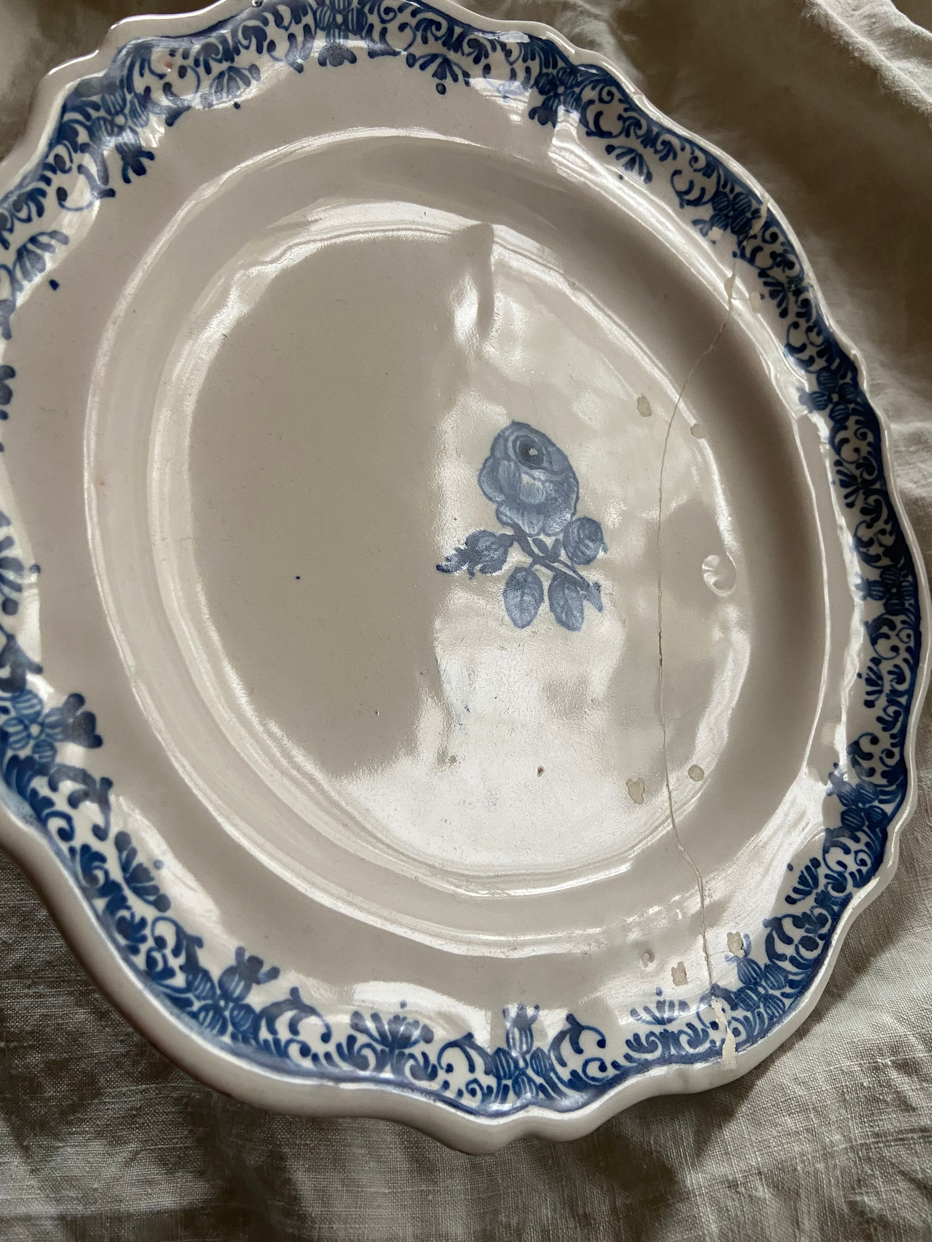 ところどころキラッと輝くブルーのインクが素敵なムスティエのプレート