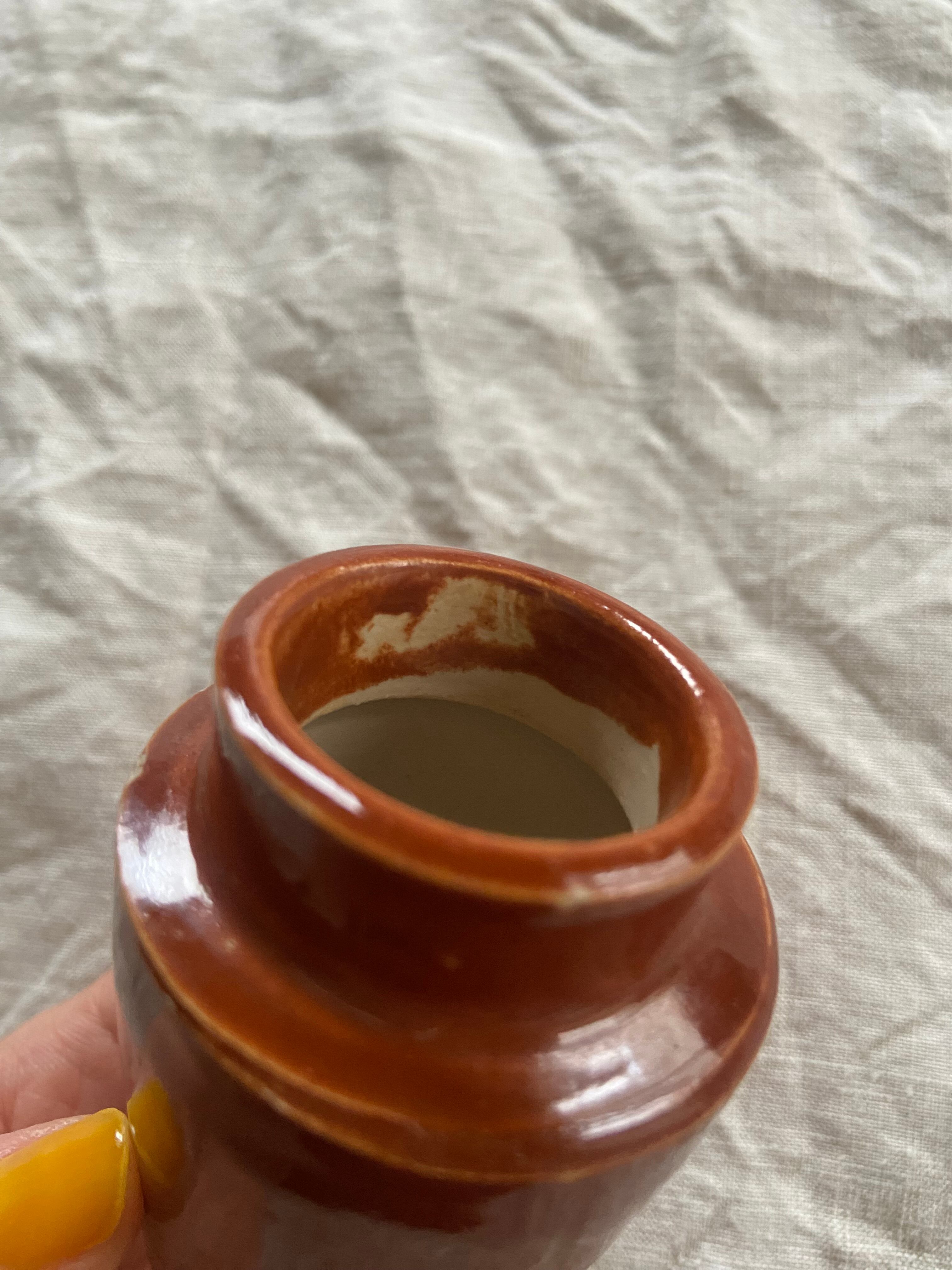 手のひらサイズの小さな茶色いポット