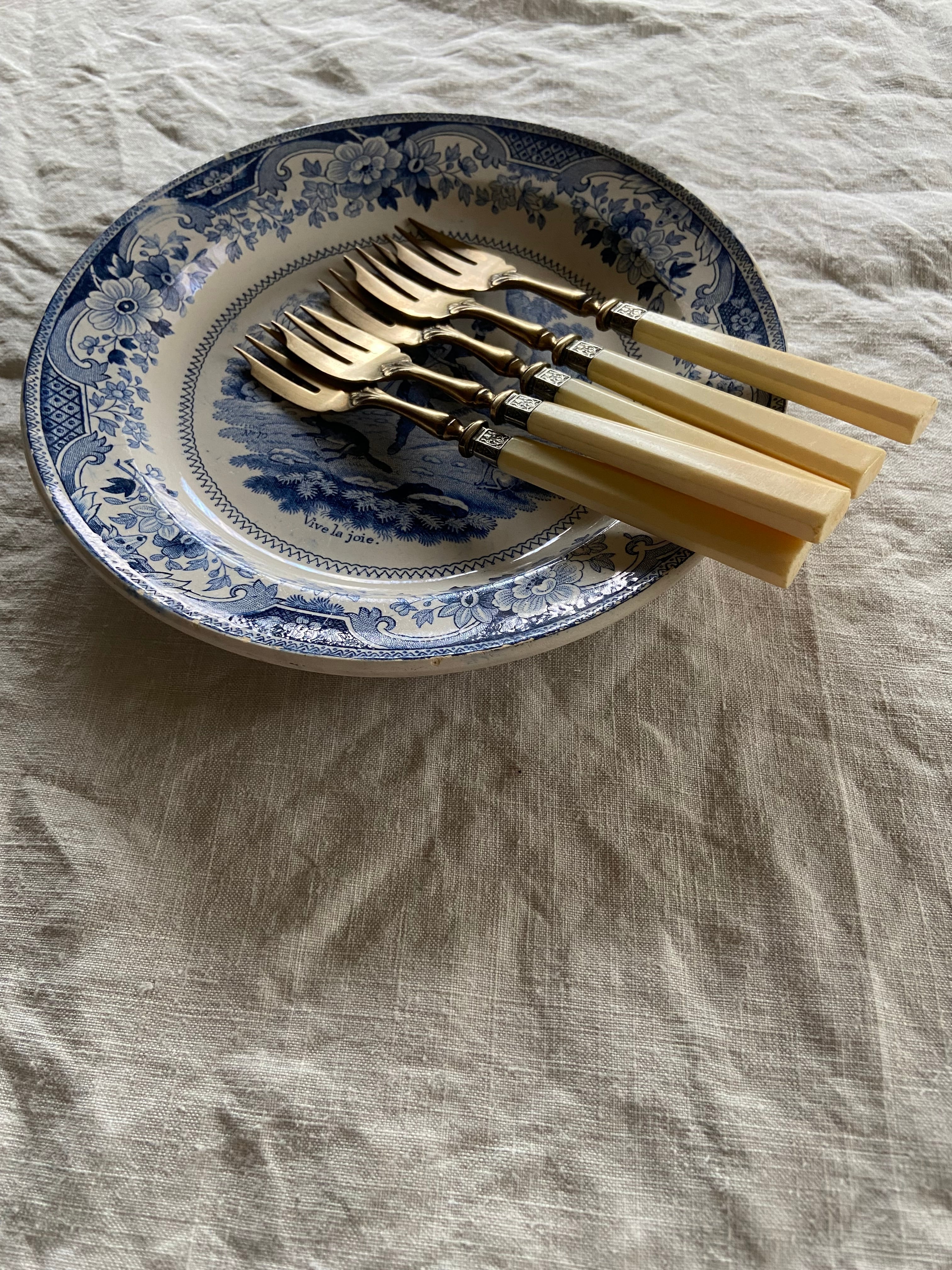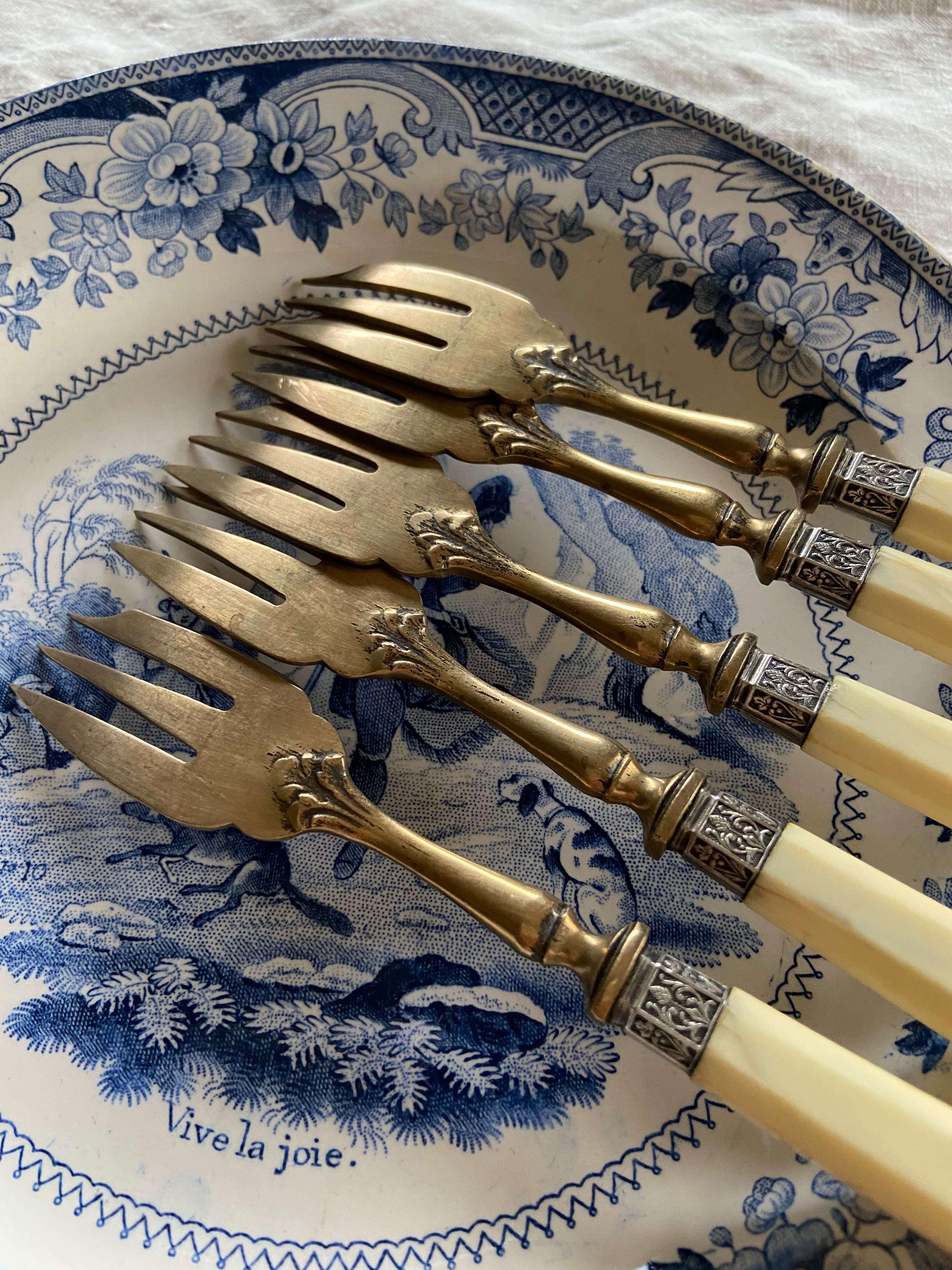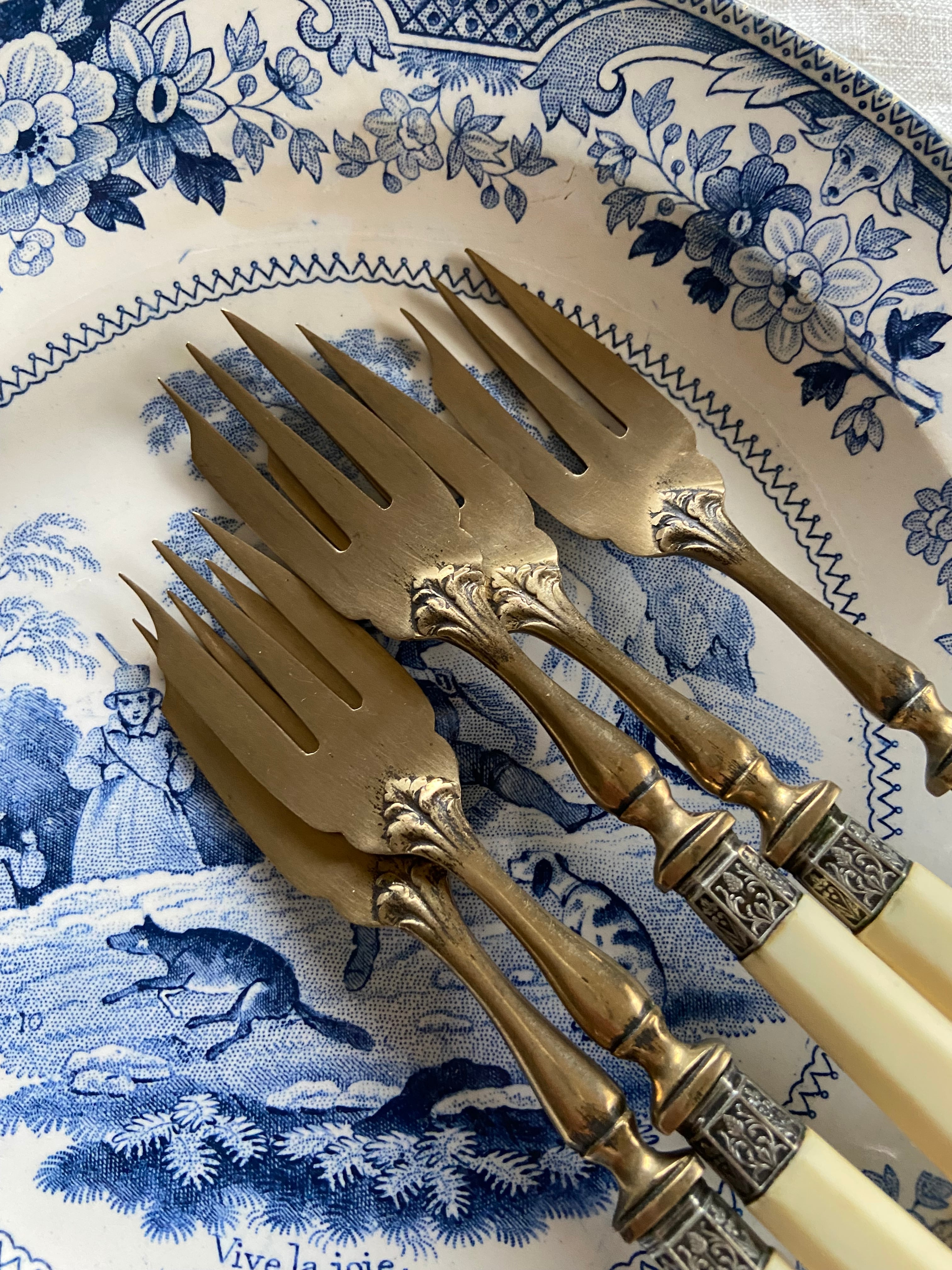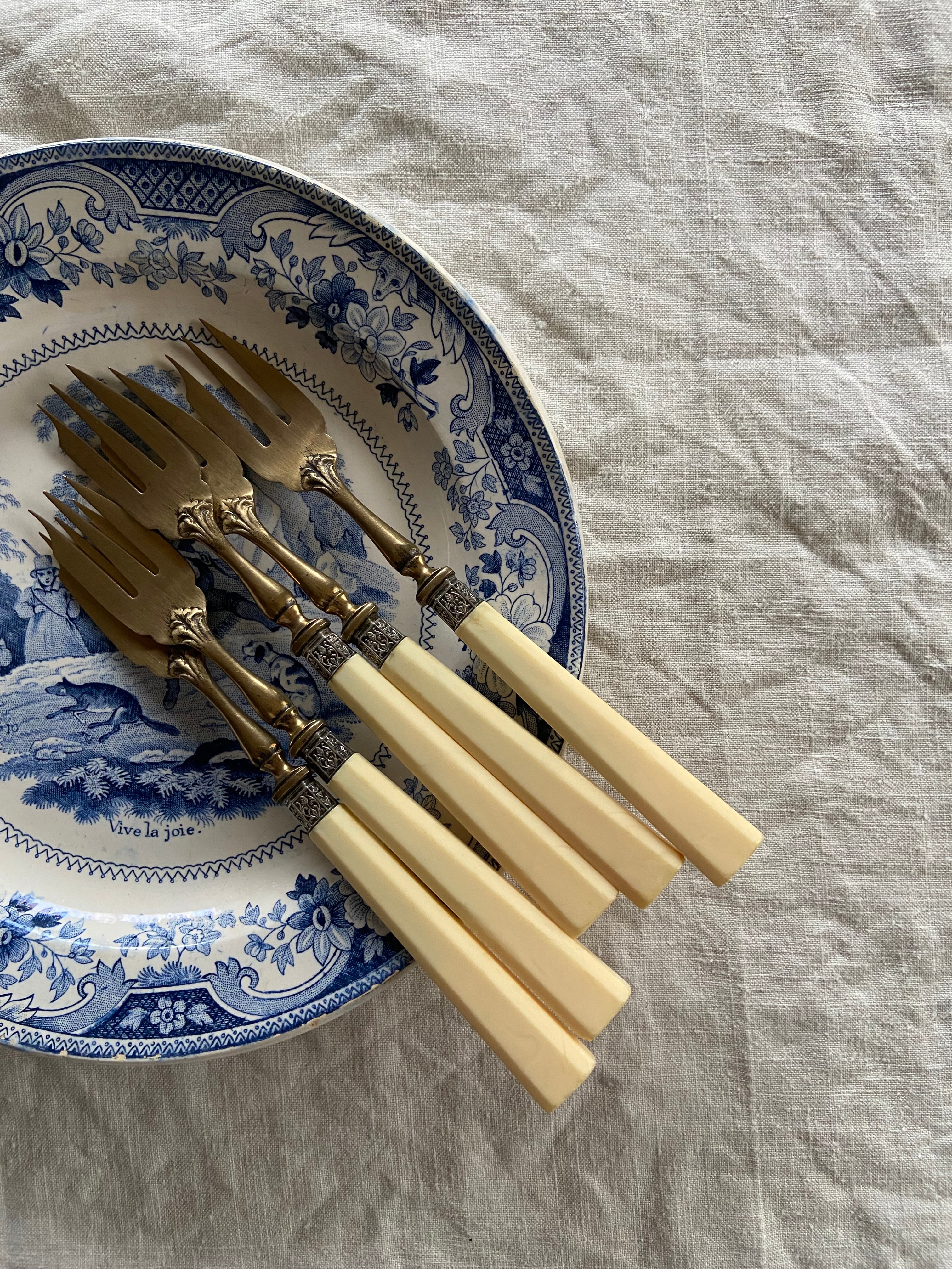 クリーム色のような白い持ち手と真鍮の組み合わせがベストマッチなフォーク