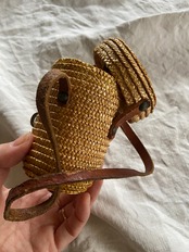 小さなストラップ付きのパニエに入った、かわいいグラス