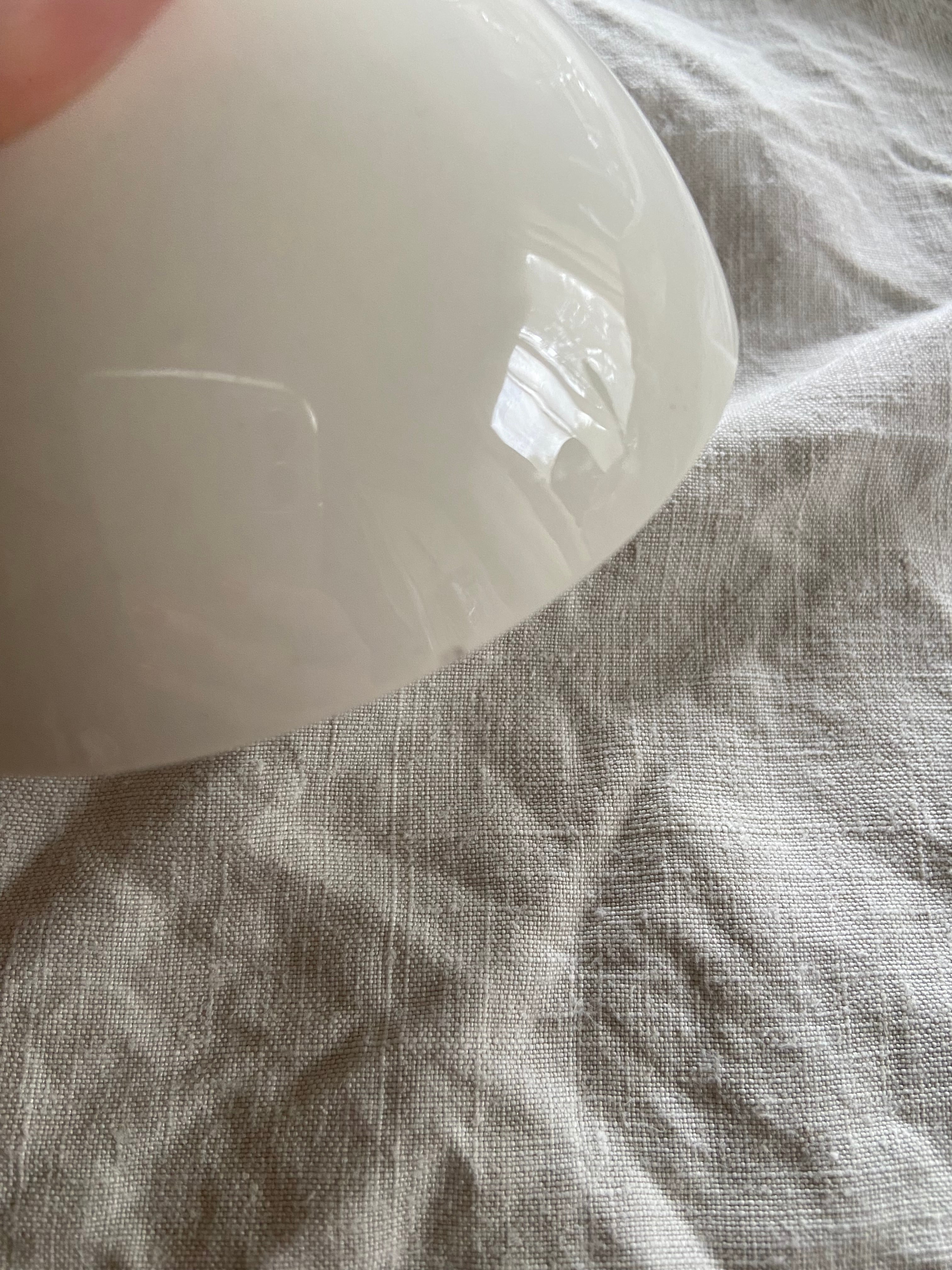 縁に大きめのチップあり。上から釉薬がかかっています。さらにそれが少し削れた箇所あり。