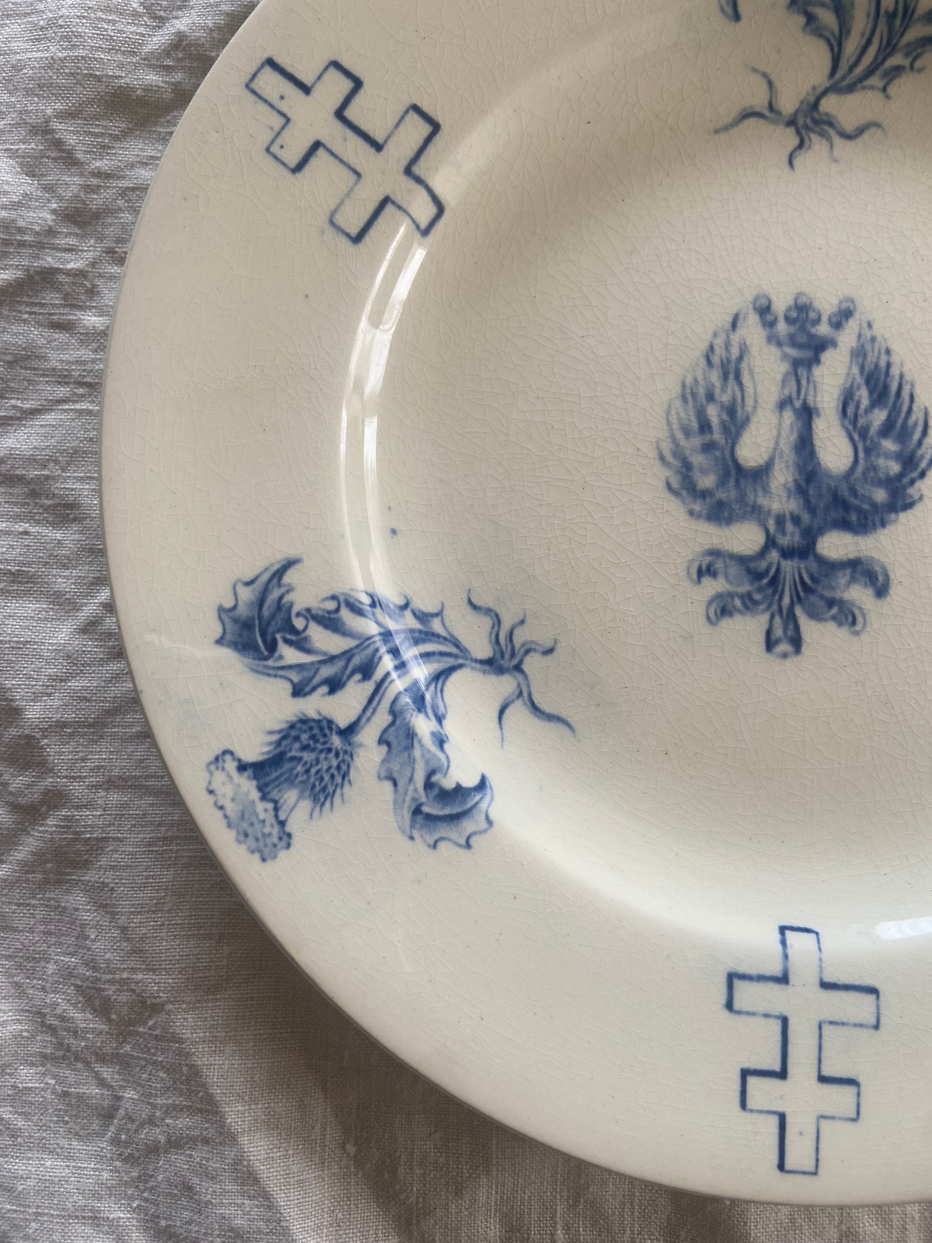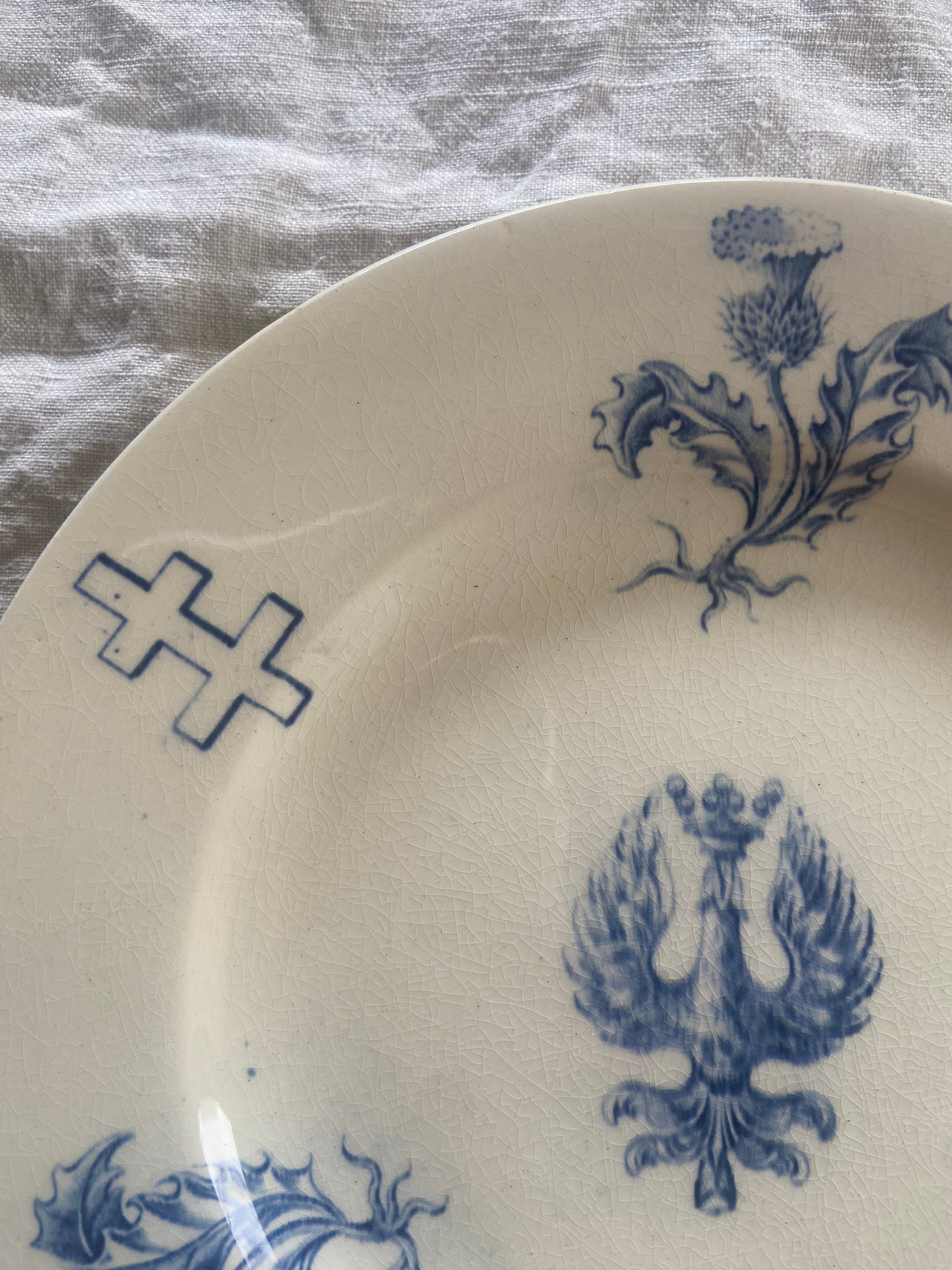 二重十字やあざみ、鳳凰がプリントされたデザートプレート