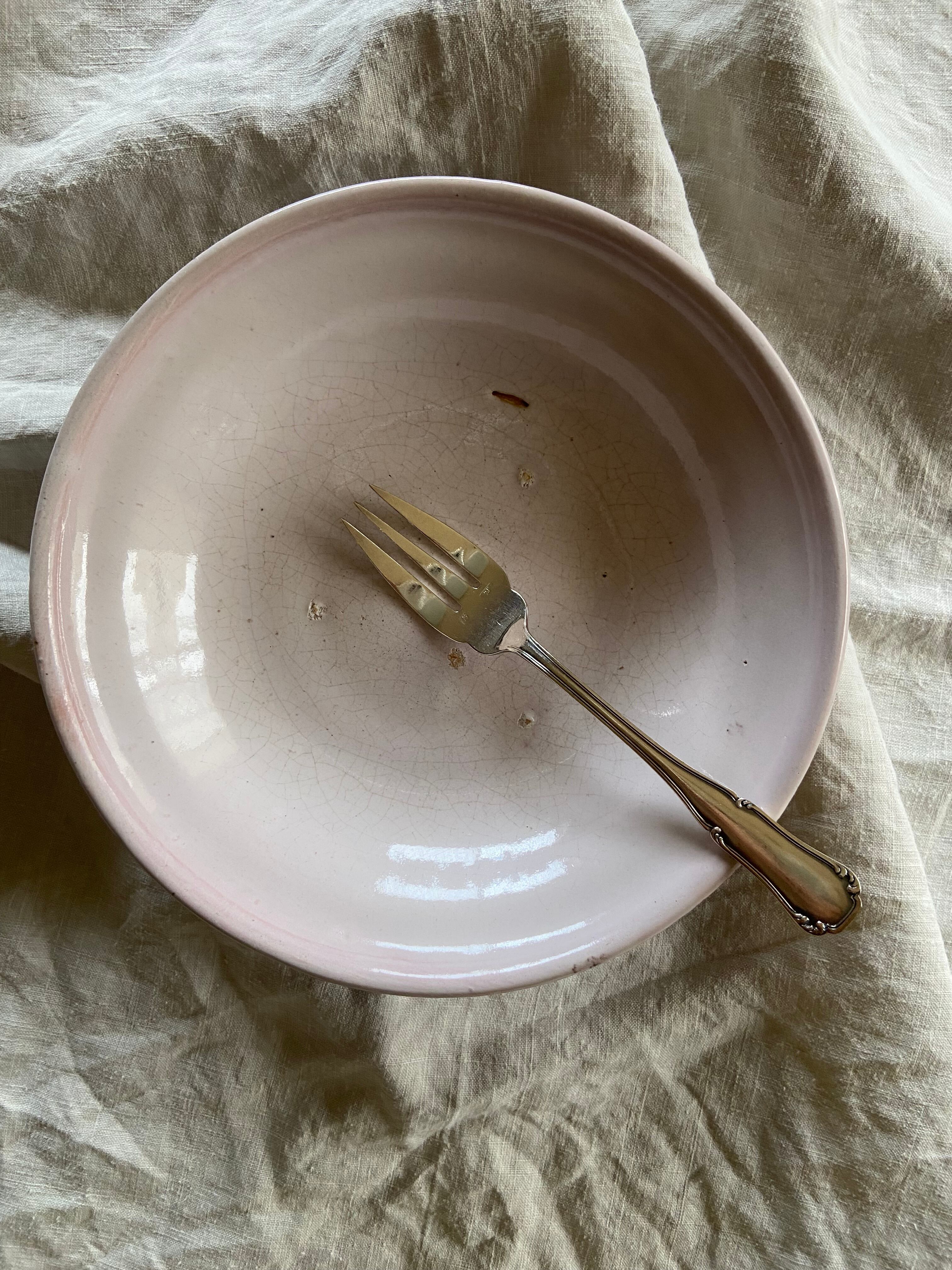 珍しい薄茶色のお尻と、ぽってりした白い釉薬がとっても素敵なお皿です。