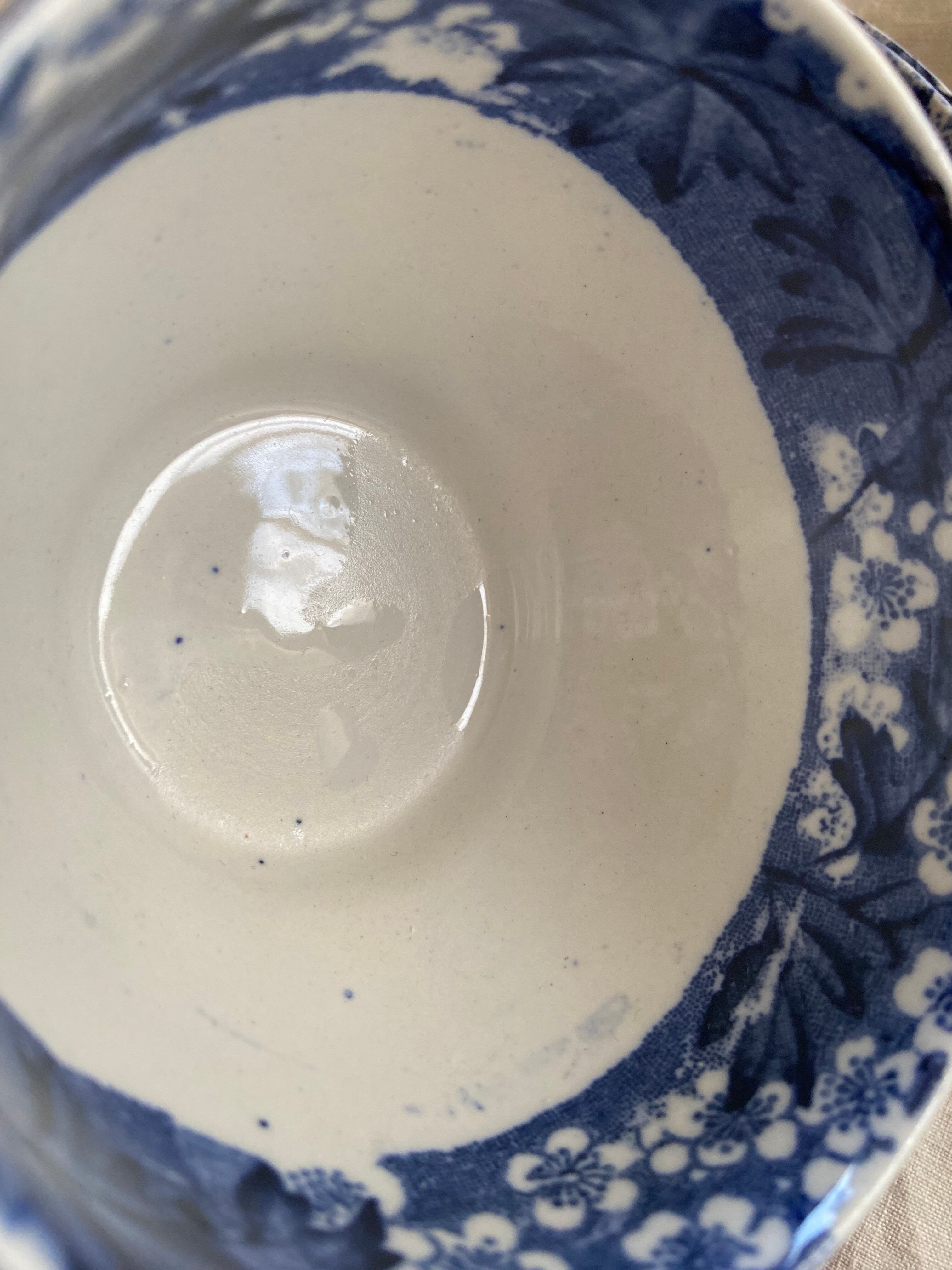 ソーサー、青いインクの飛び散りが多数あります。