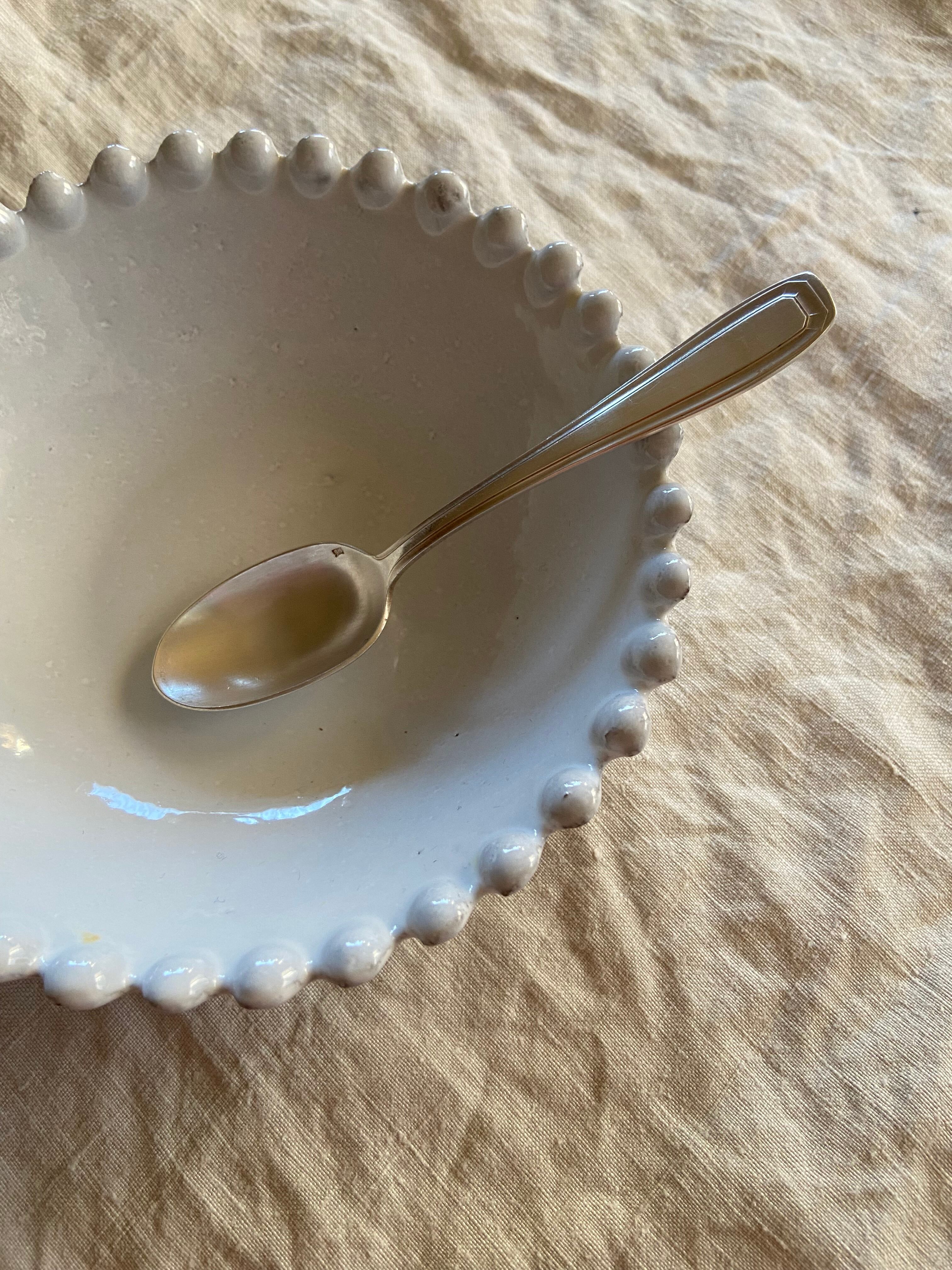 シンプルだけれど、刻印や、フォークの独特のフォルム、スプーンの深さなど、アンティークカトラリーならではの魅力たっぷりなお品です。
