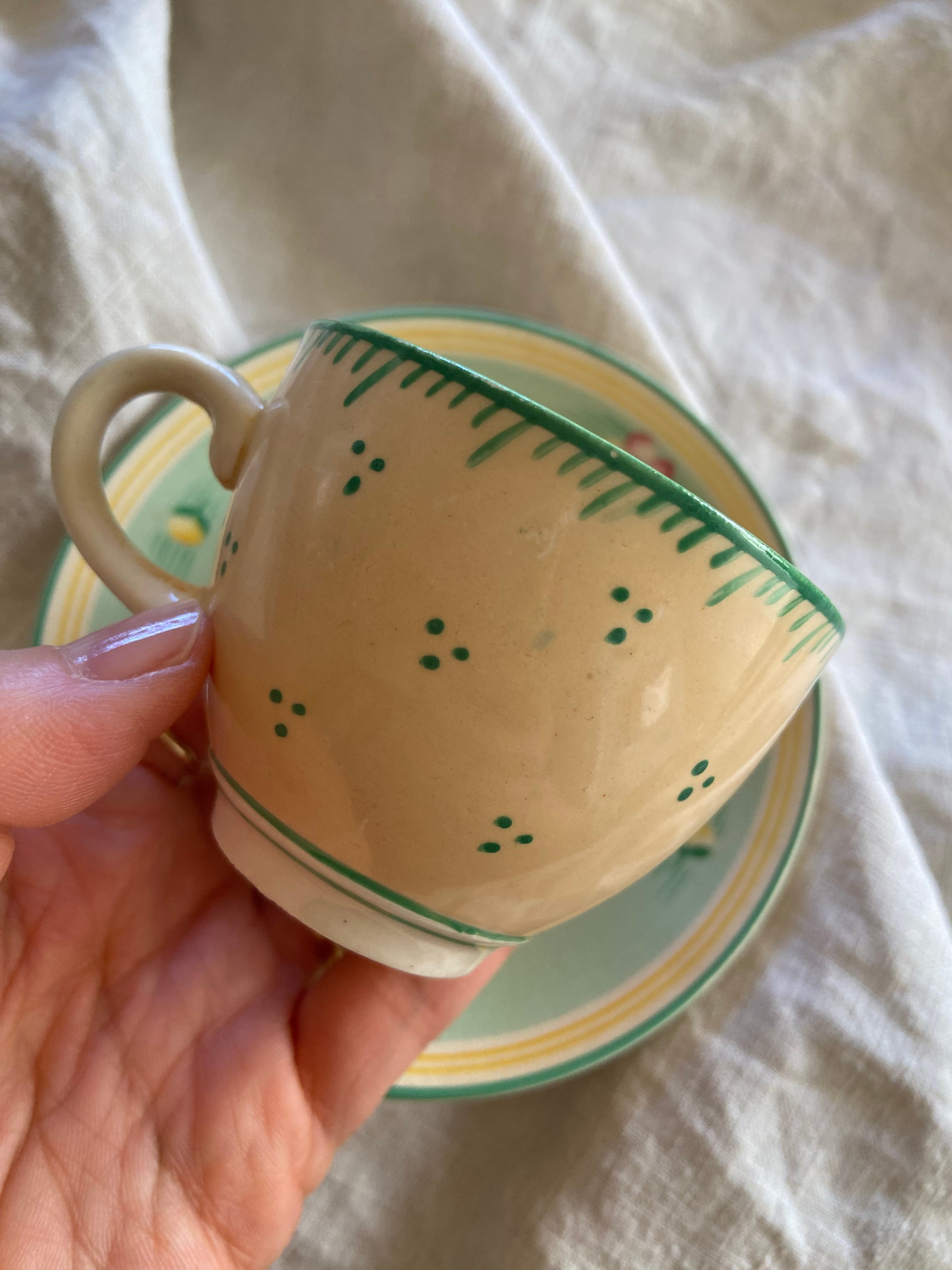 カップもソーサーも、色付けや模様が全て一つ一つ手描きで描かれていて、見ているだけで幸せな気分になっちゃいます。