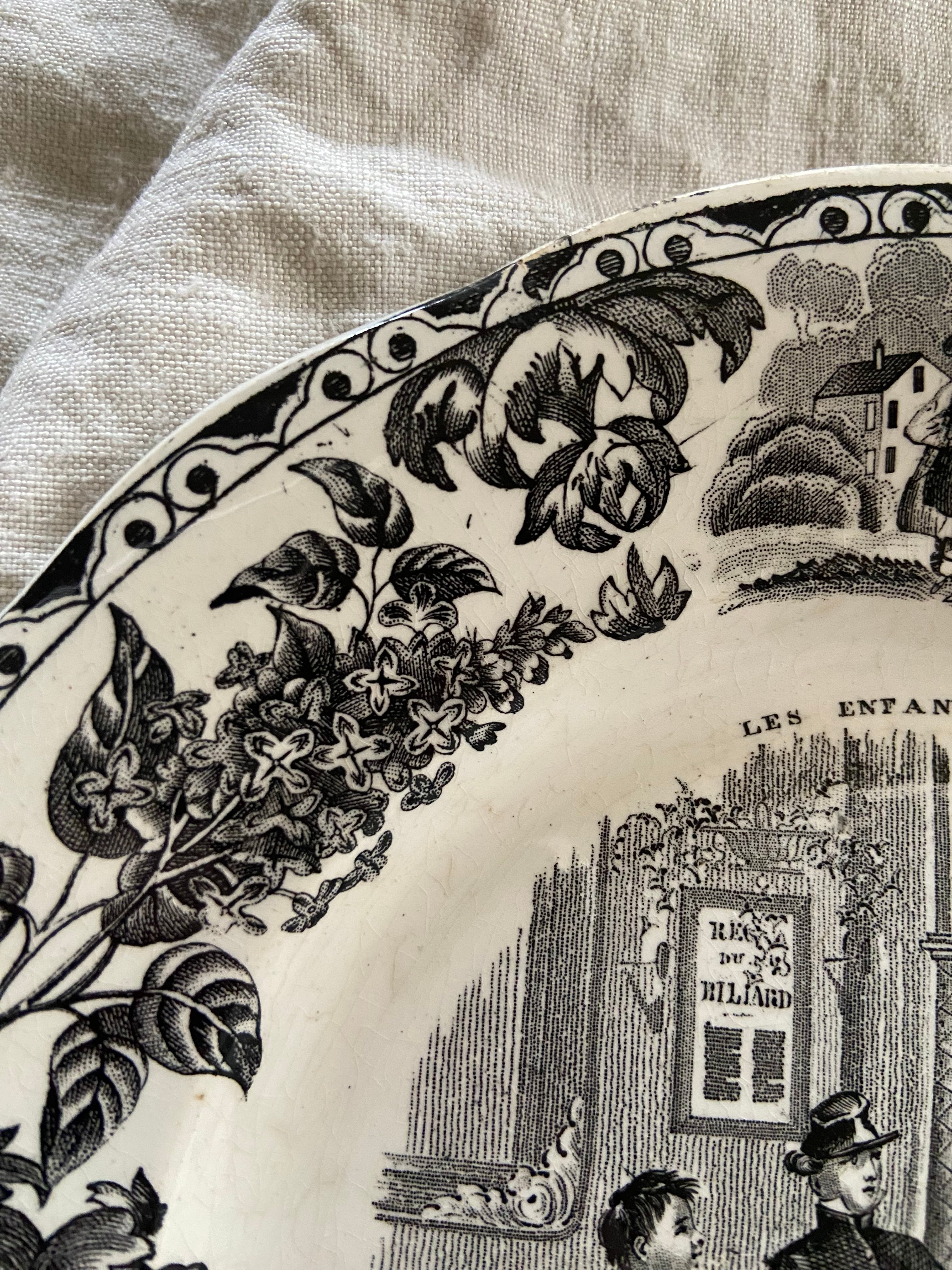 『ませた子どもたち!』グリザイユプレート フランスアンティーク#45