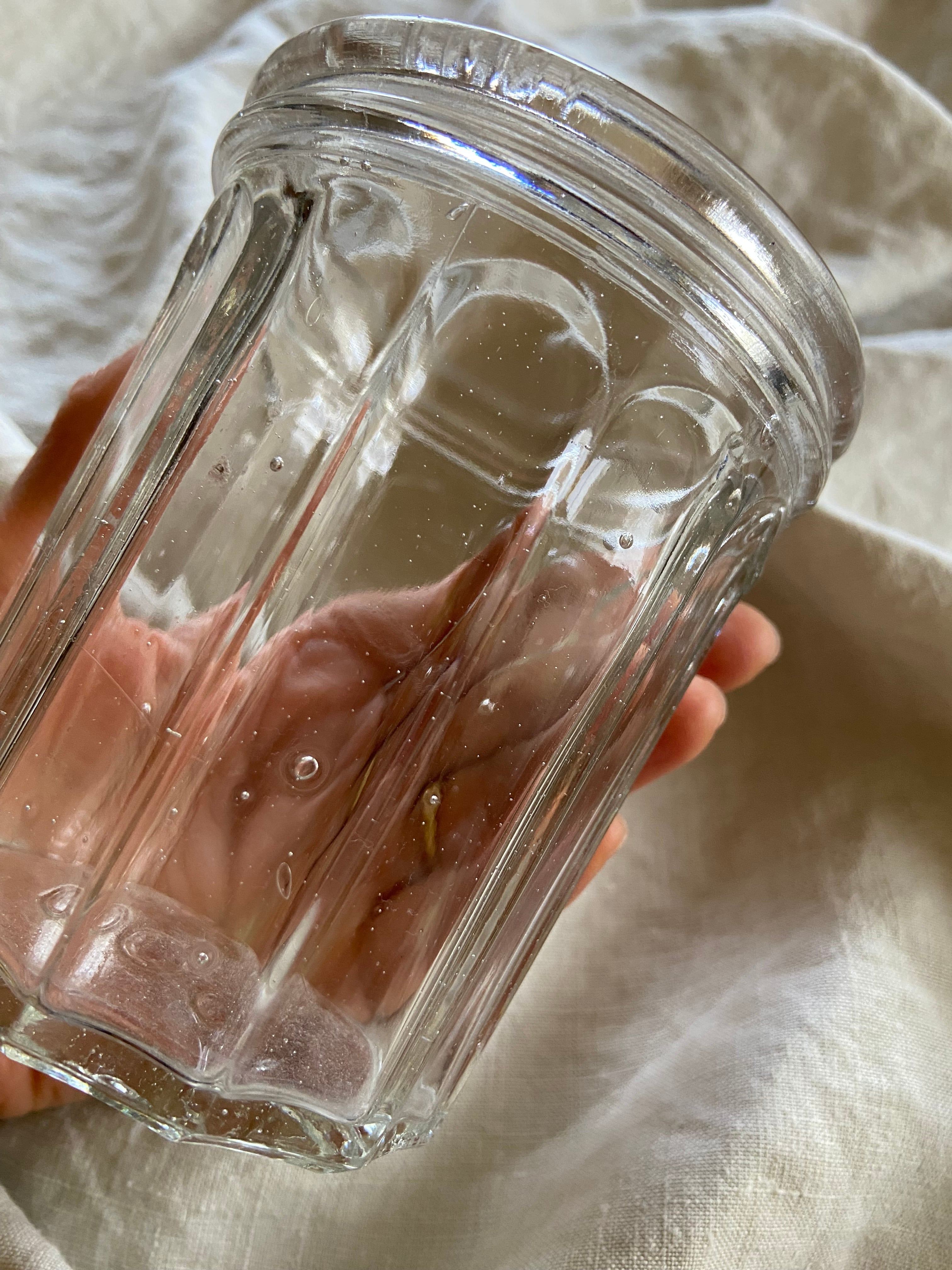 去年パリの蚤の市で出会ったコンフィチュールポット。ムッシュのお父さんの家から見つかった品で、80年ほど前のものだそう。