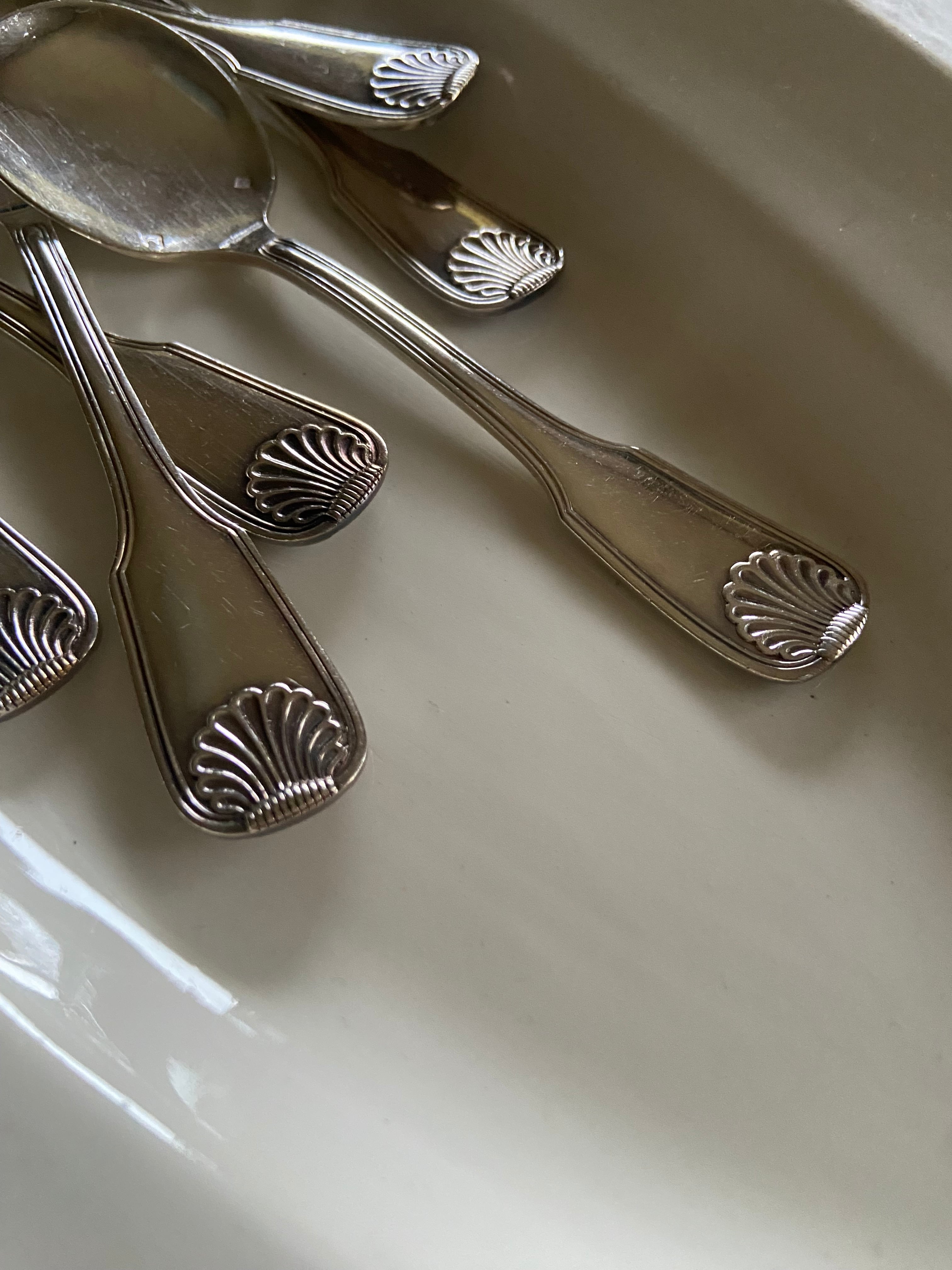 帆立のようなシェルの持ち手がポイントとなり、素敵な雰囲気のスプーンです。