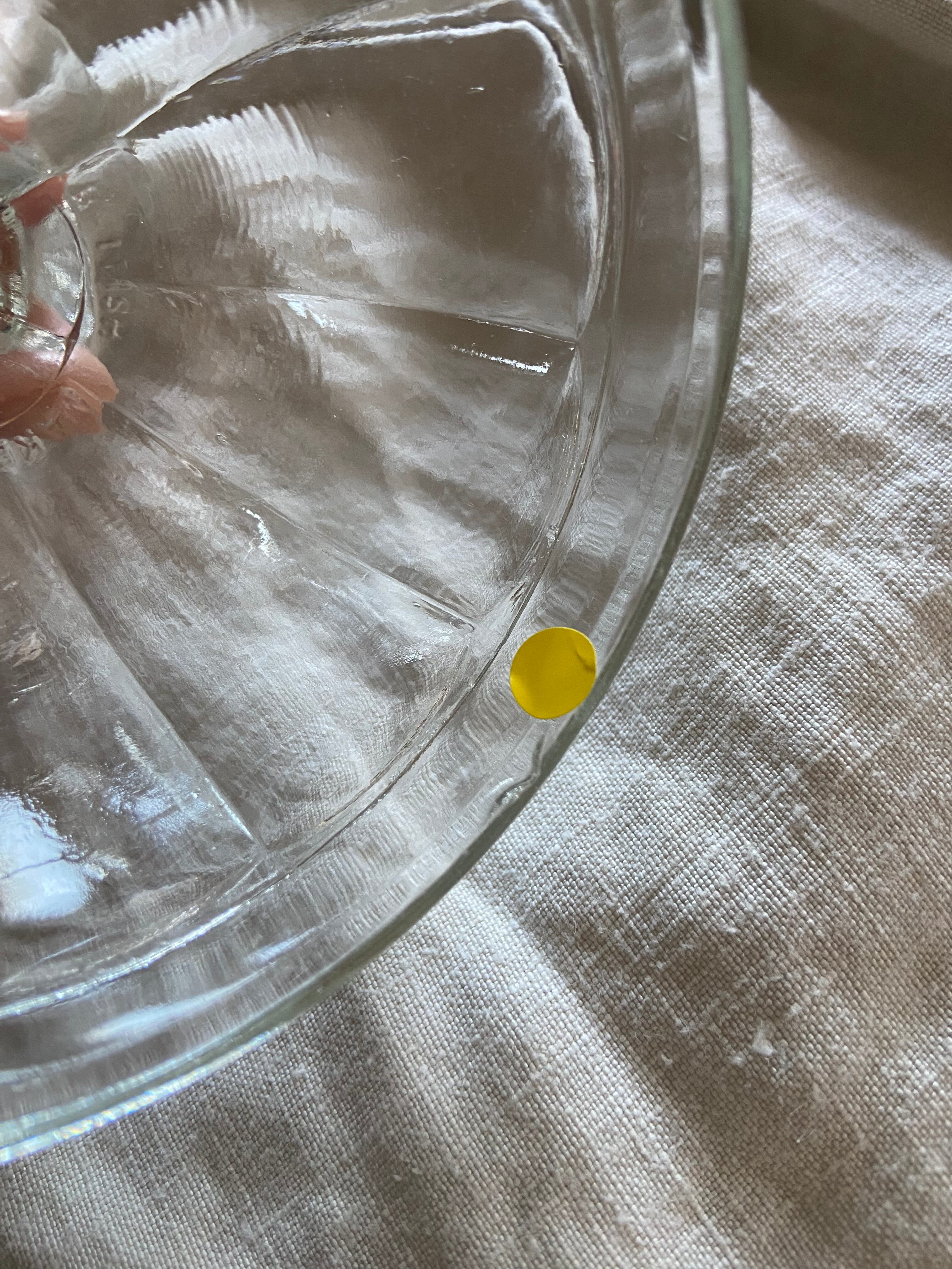 1箇所、ガラスの中に小さな線が入っています。手で触れても特に気になる感じではなく、問題ないかと思いますが、黄色のシールの所をご確認ください。