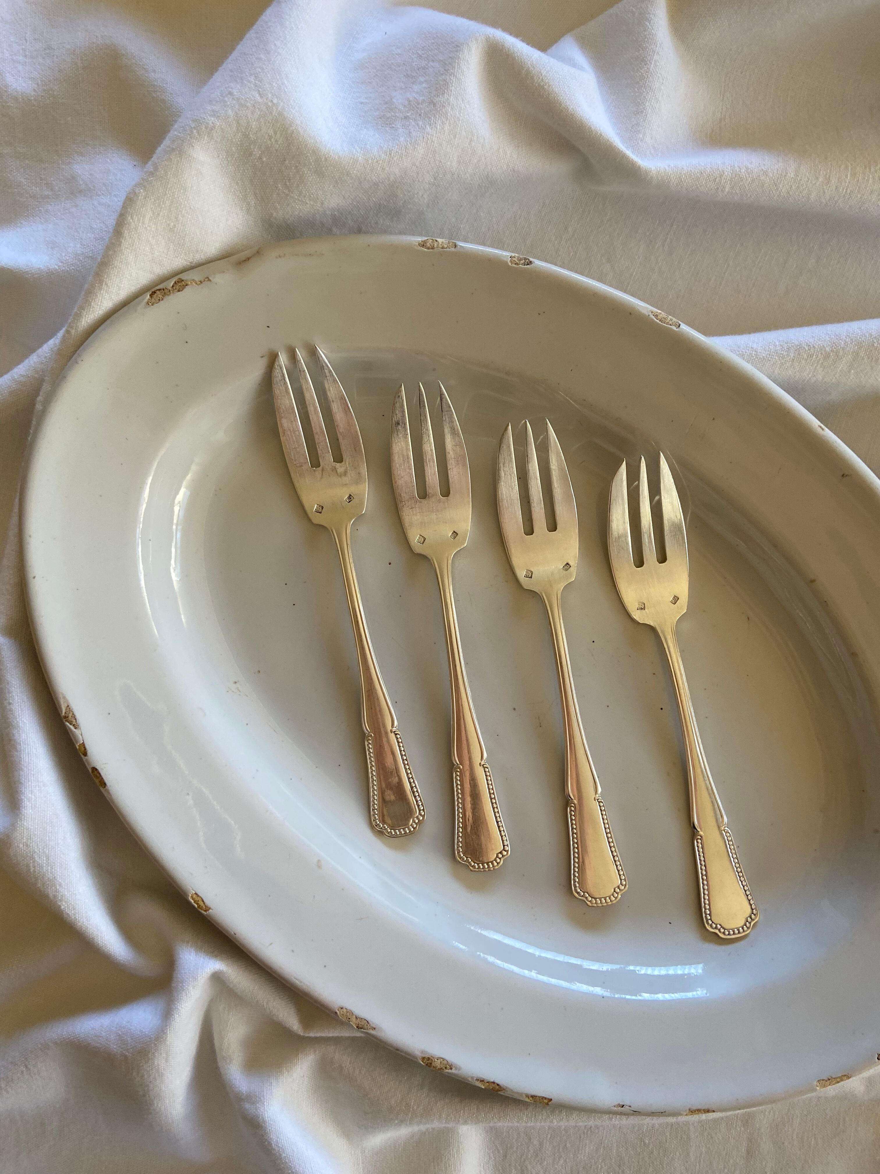 持ち手がポチポチして可愛らしいフランス ヴィンテージフォークになります。