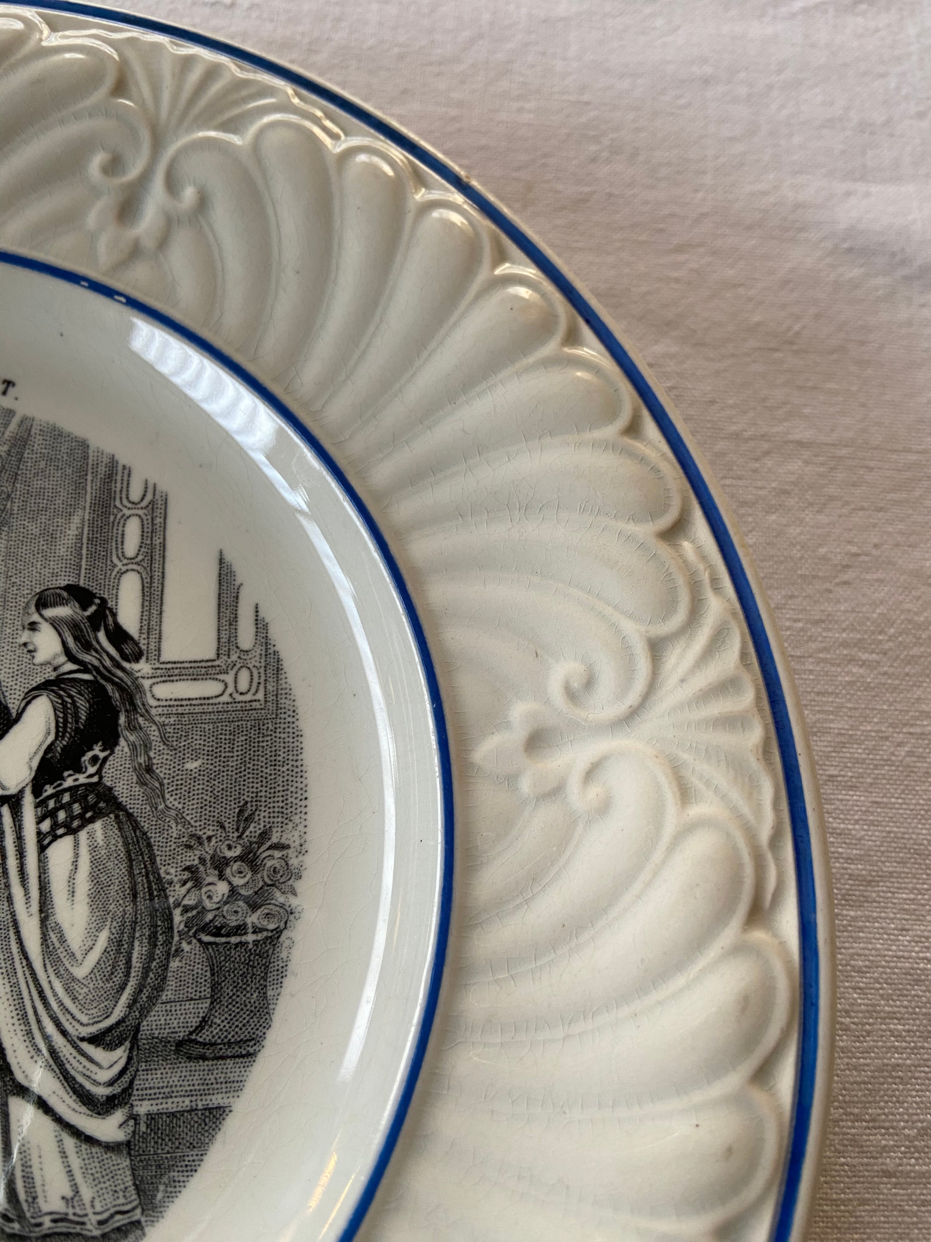 フランスアンティーク、クレイユエモントロー 絵皿になります。