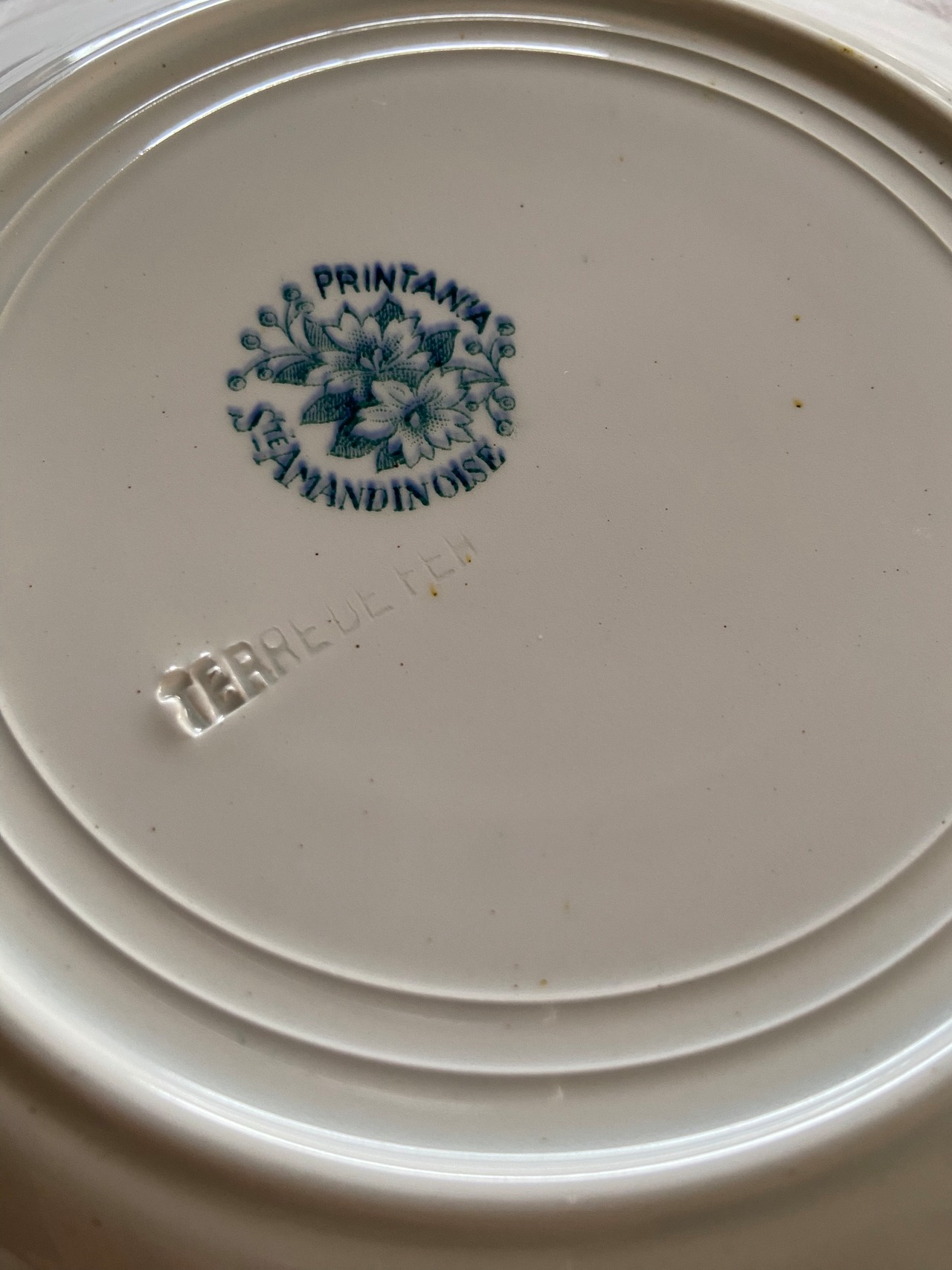 かわいい小花がぐりると描かれたサンタマンSt.amandのプレート。赤いトマトソースと相性良さそう!