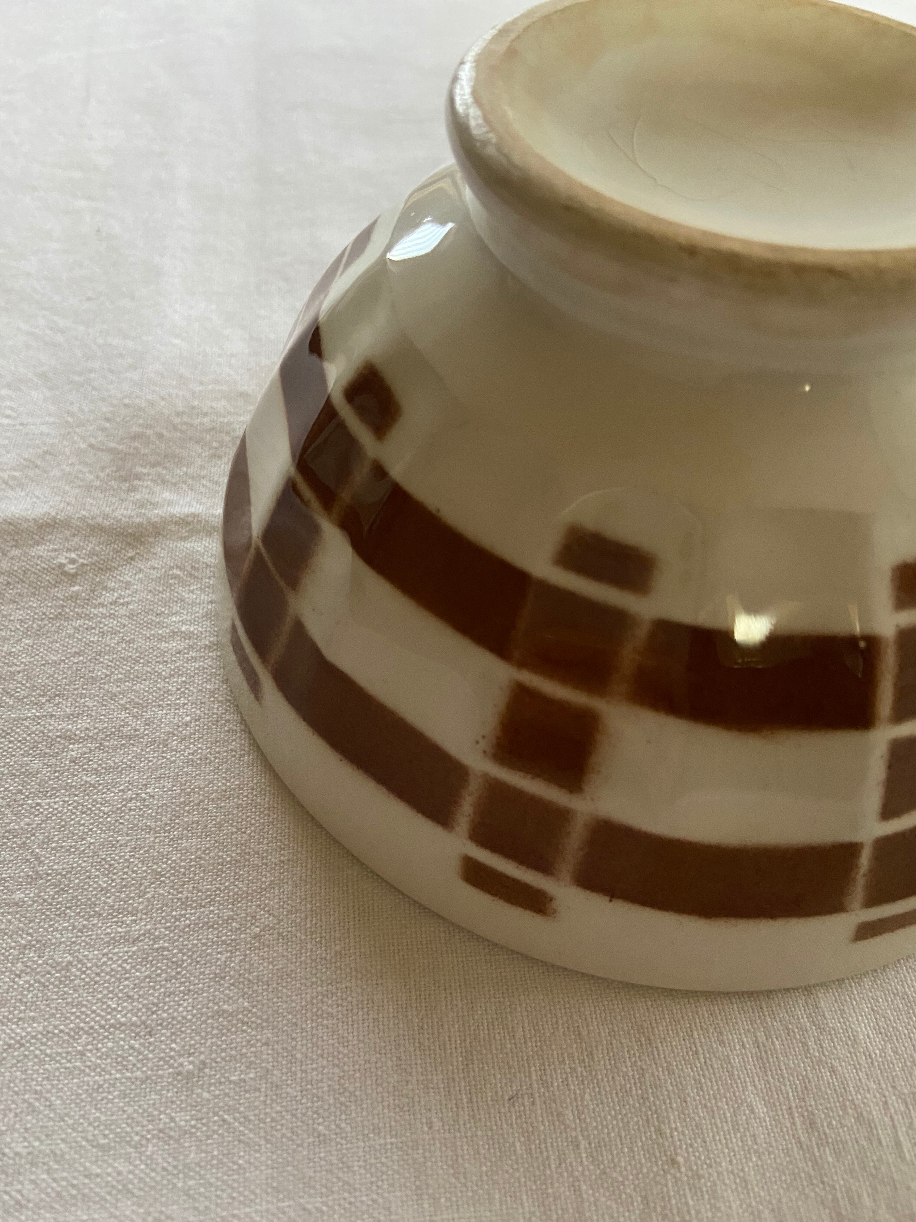 茶色いバンブー柄のカフェオレボウル(小)になります。