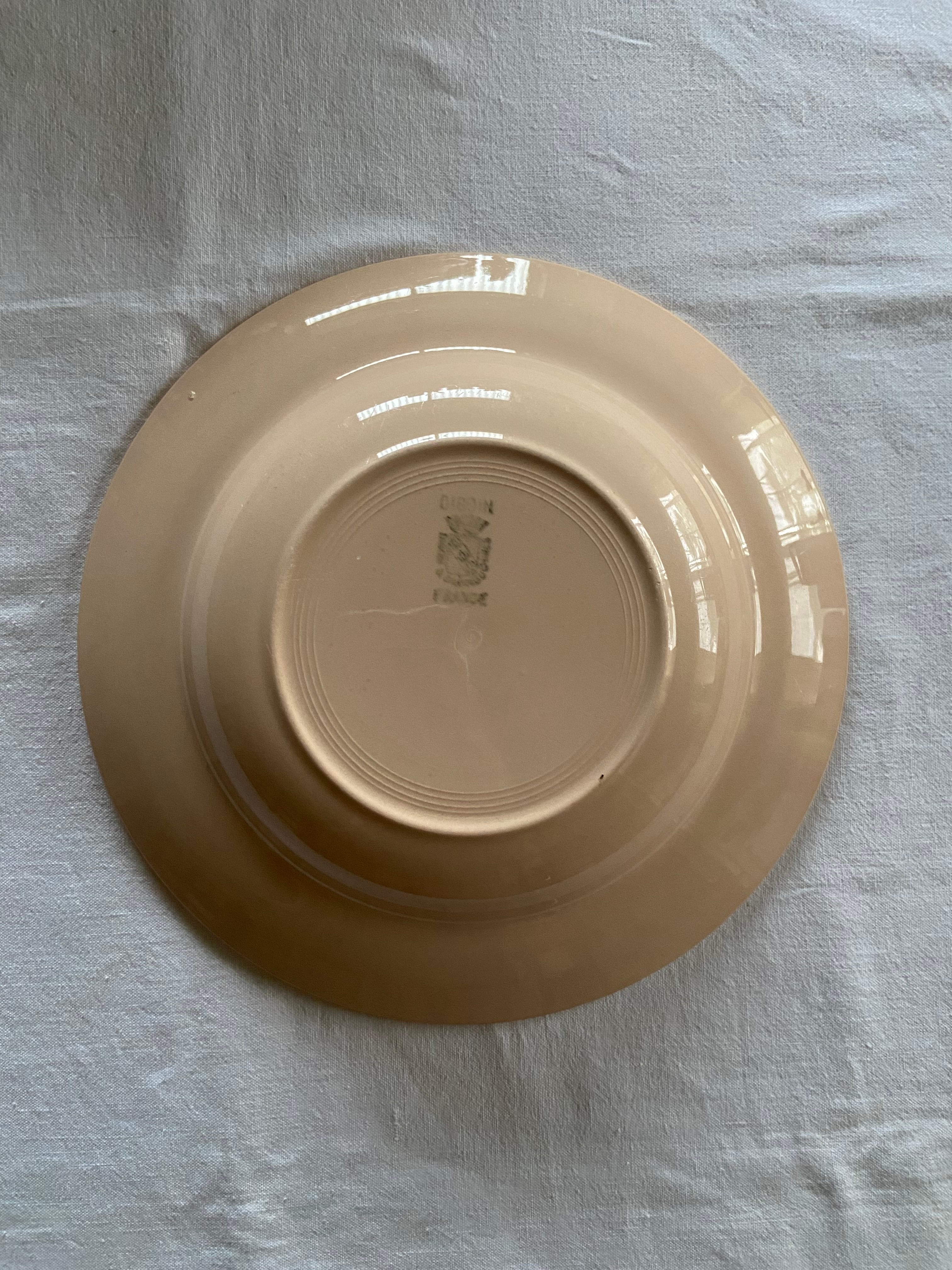 フランスアンティーク、サルグミンヌの深皿Dになります。サーモンピンクのようなベージュのような珍しいお色です。
