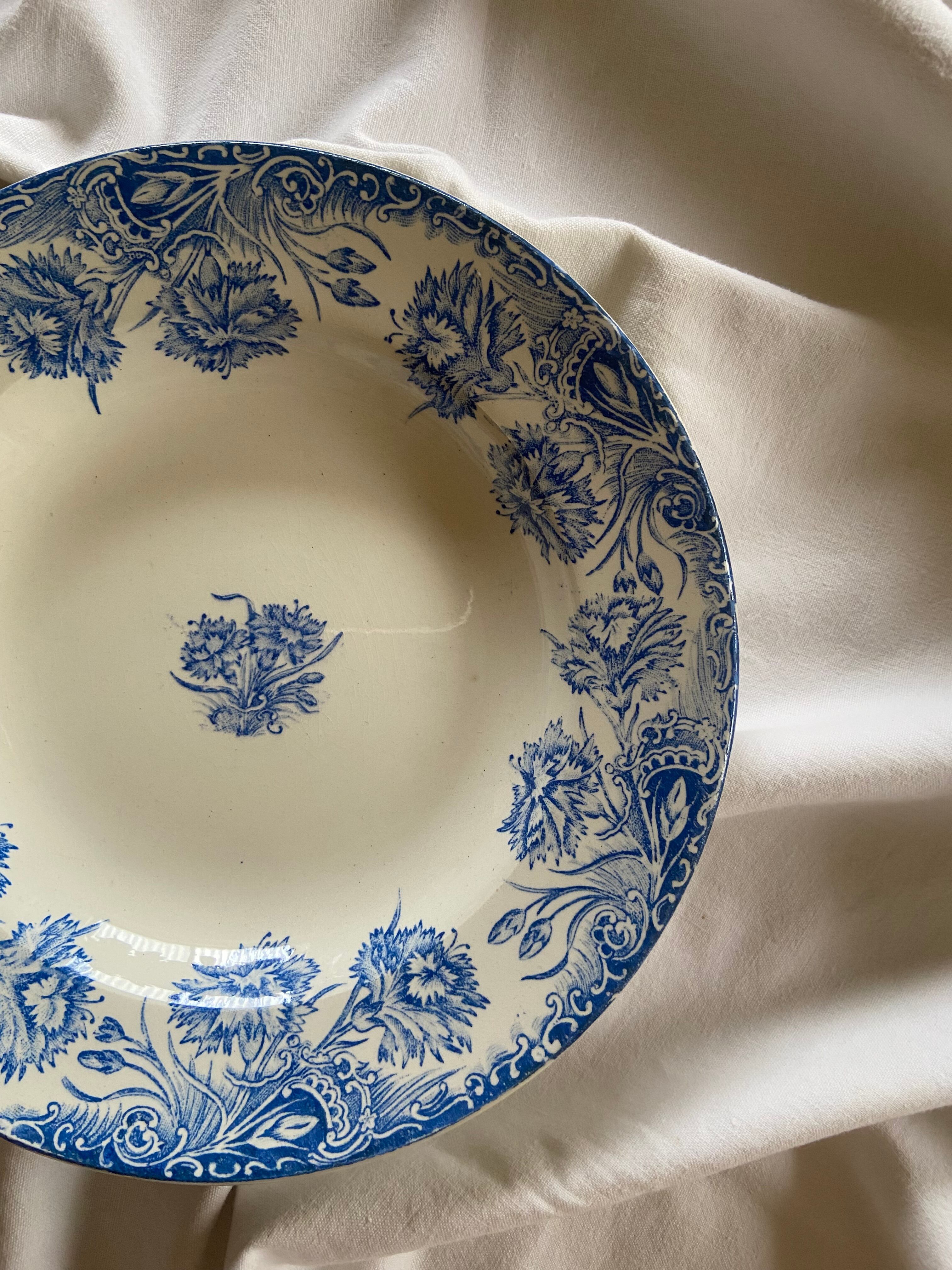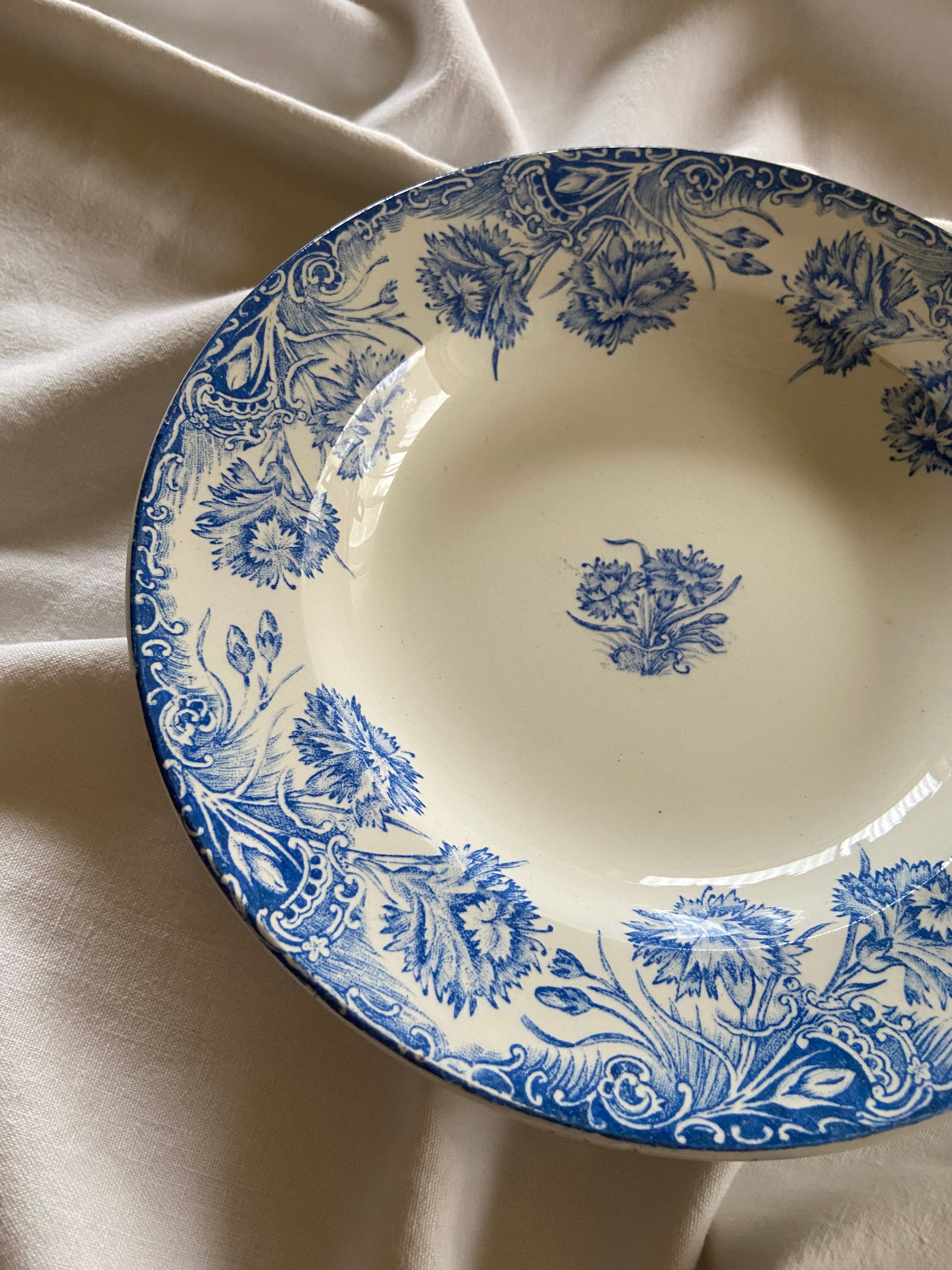 ブルーのカーネーションが華やかなサンタマンのアンティークプレートになります。