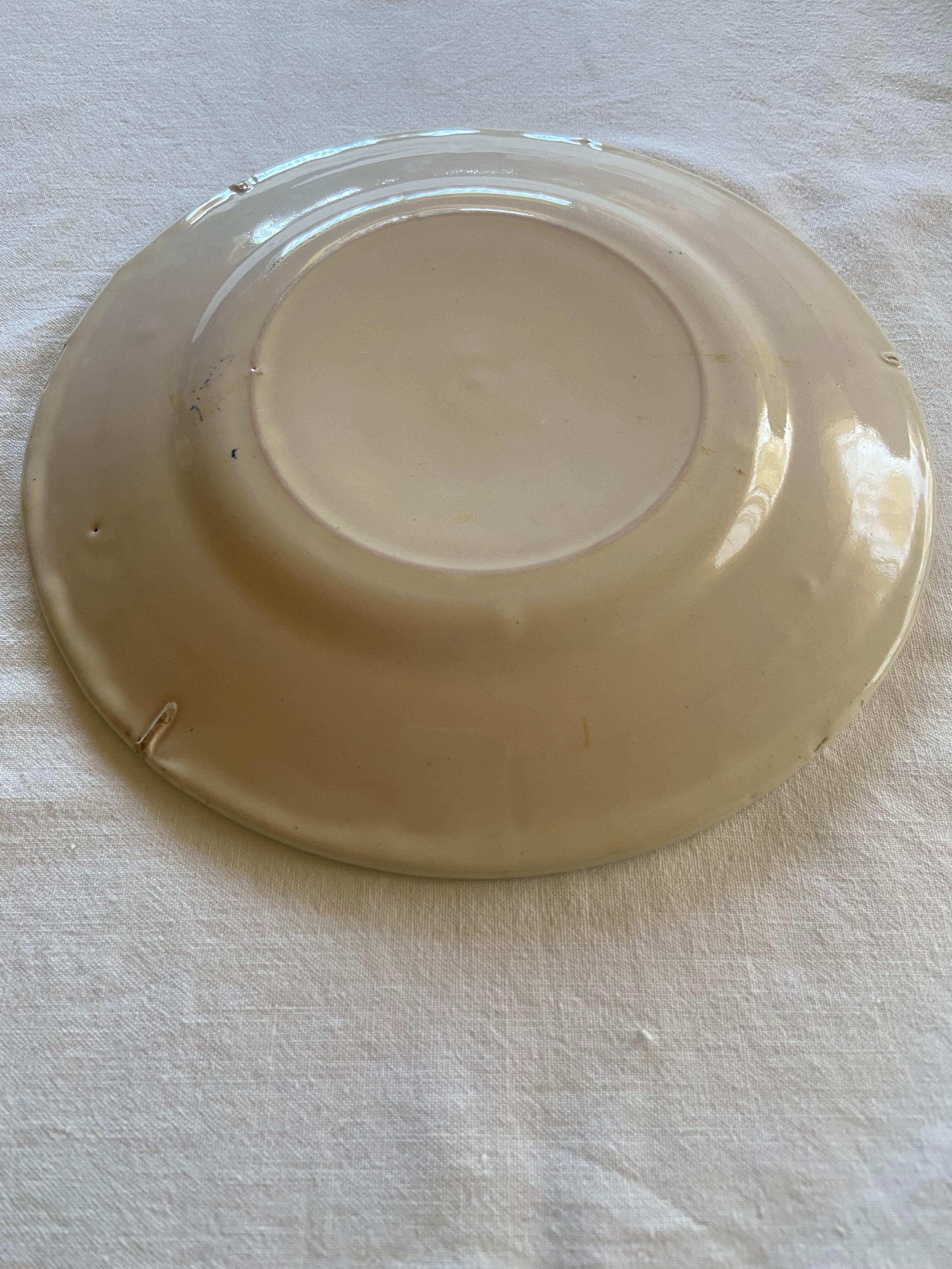 白いぽってりした釉薬の感じと、一つひとつステンシルで描かれたお花が素敵な一枚です。