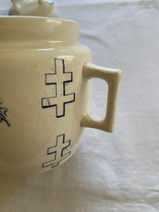 ロレーヌ十字とアザミが描かれたポットになります。