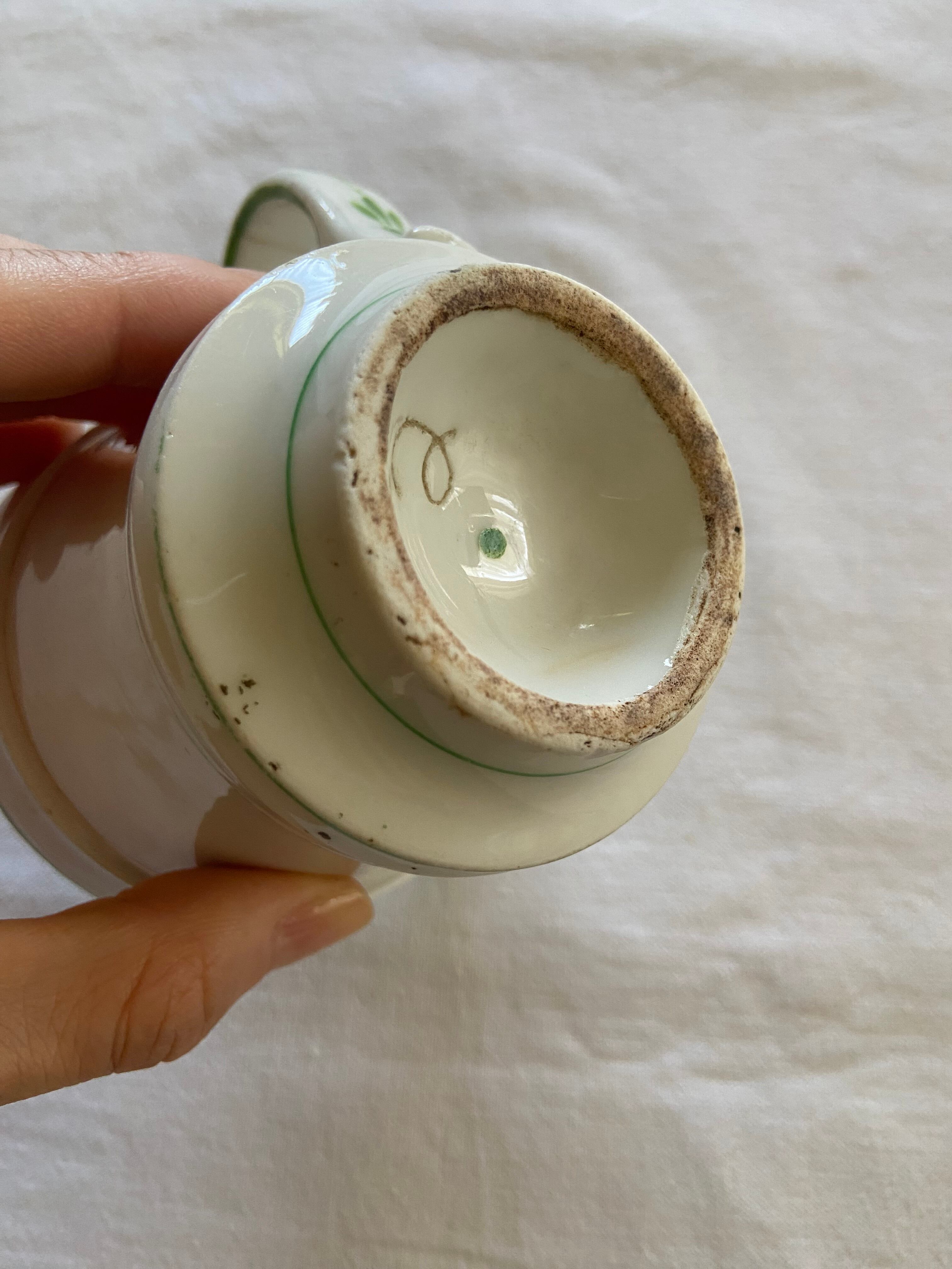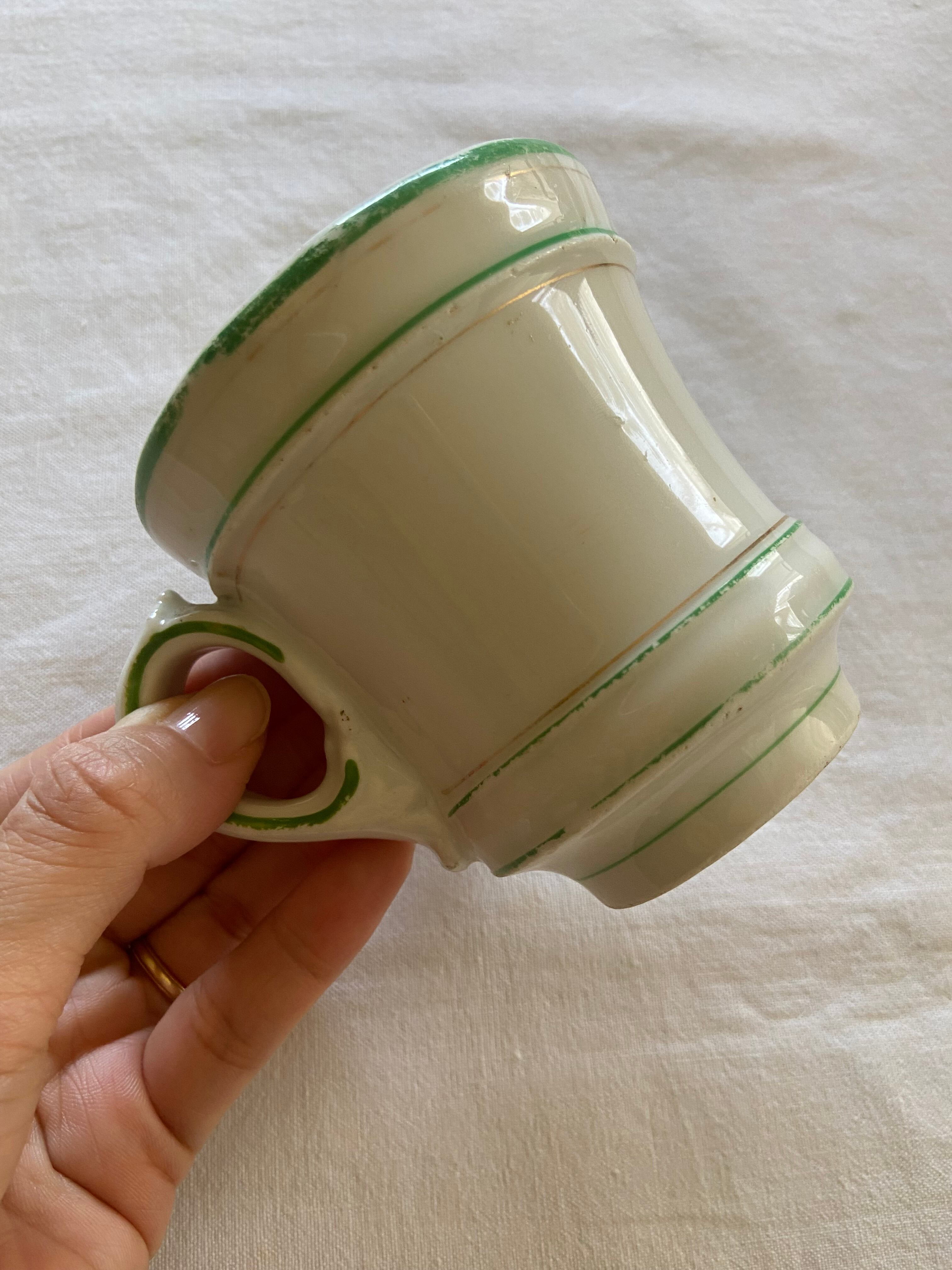 19世紀のフランスビストロで主に使われていたもので、コーヒーを飲んだ後、まだ温かいカップをひっくり返して、裏のくぼみに強いお酒を入れて飲んでいたそう。