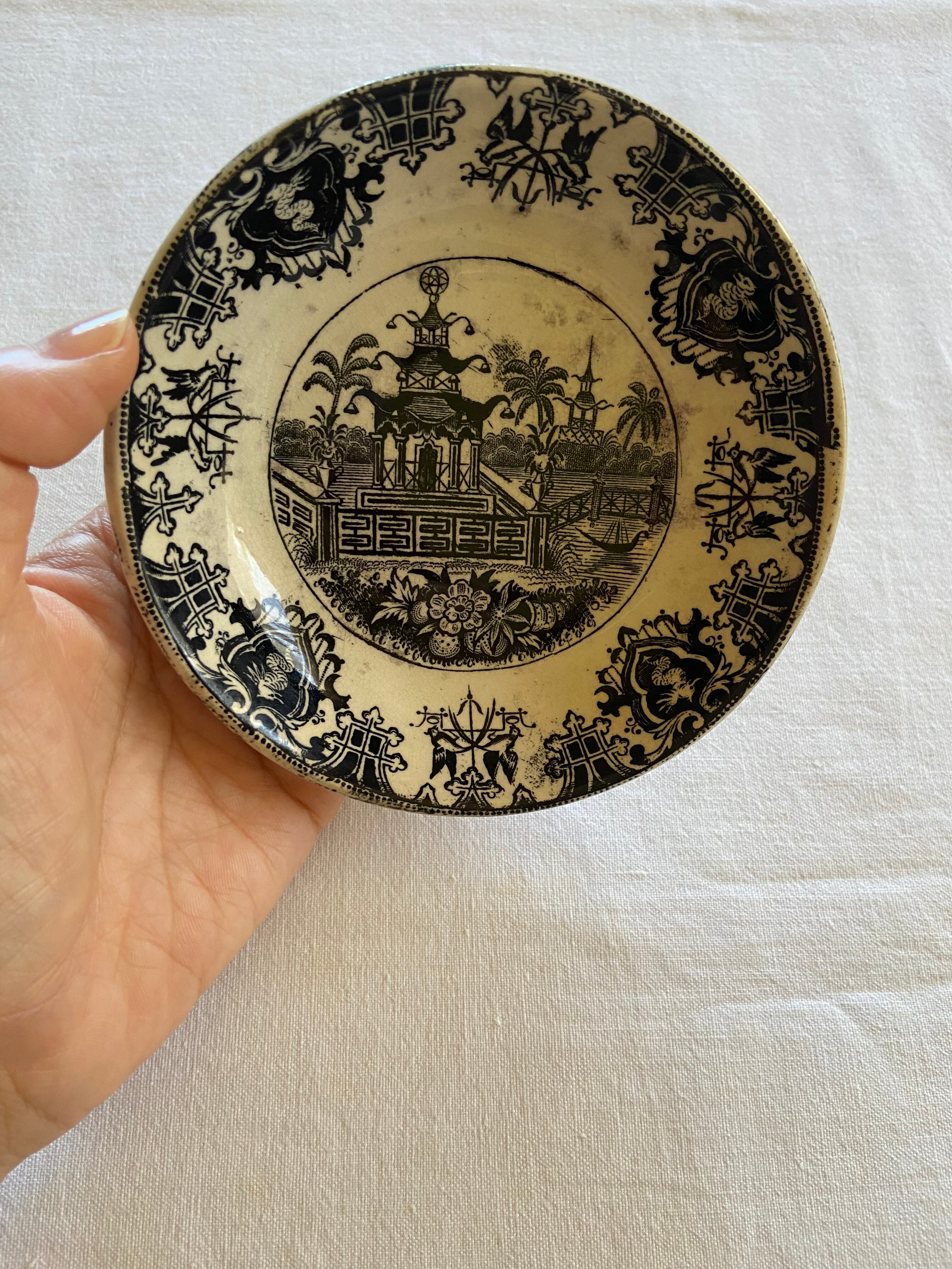 裏側のしみしみ具合がなんとも言えず愛着が湧く、sarregueminesのグリザイユプレートになります。