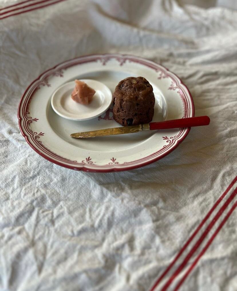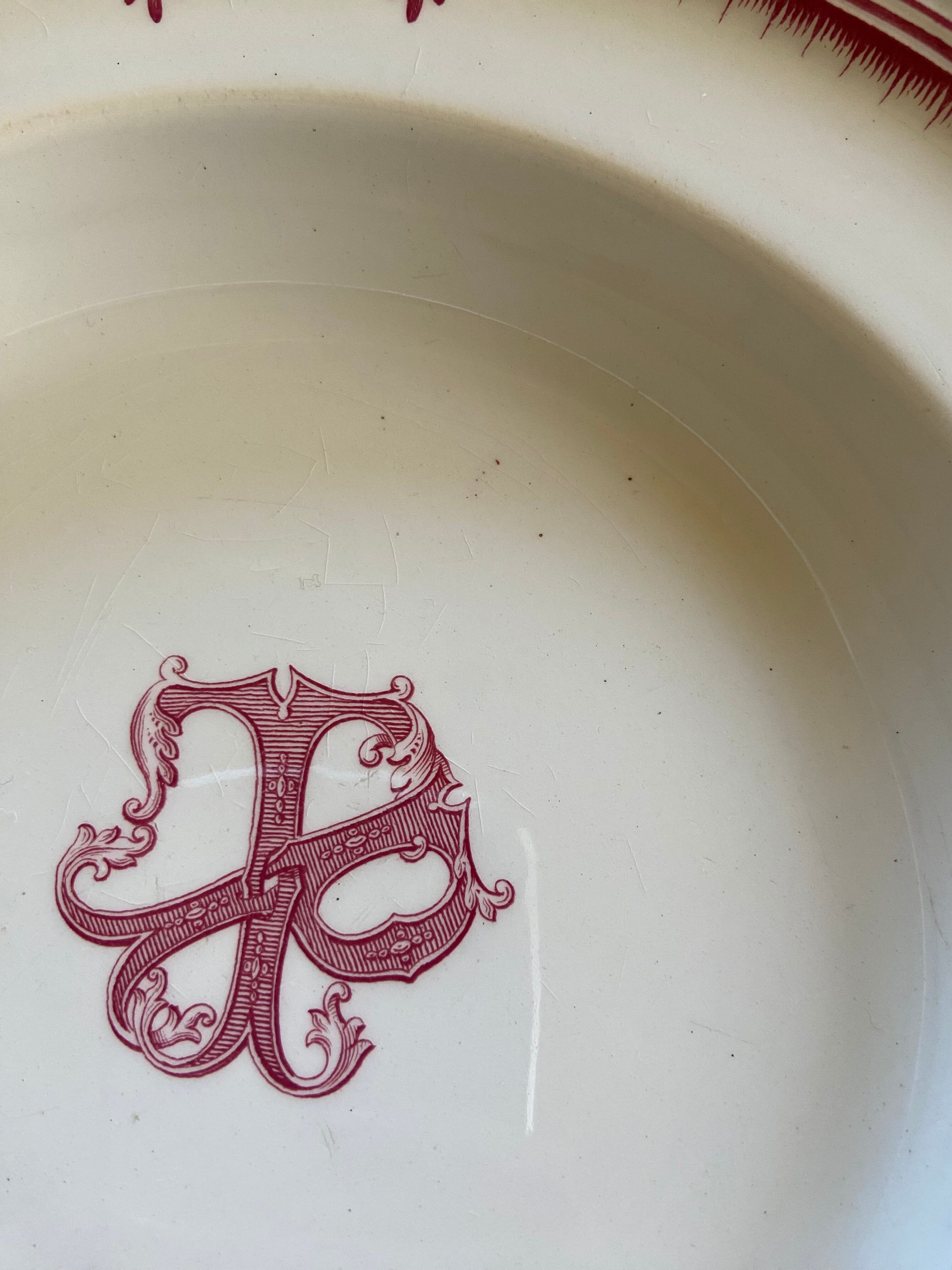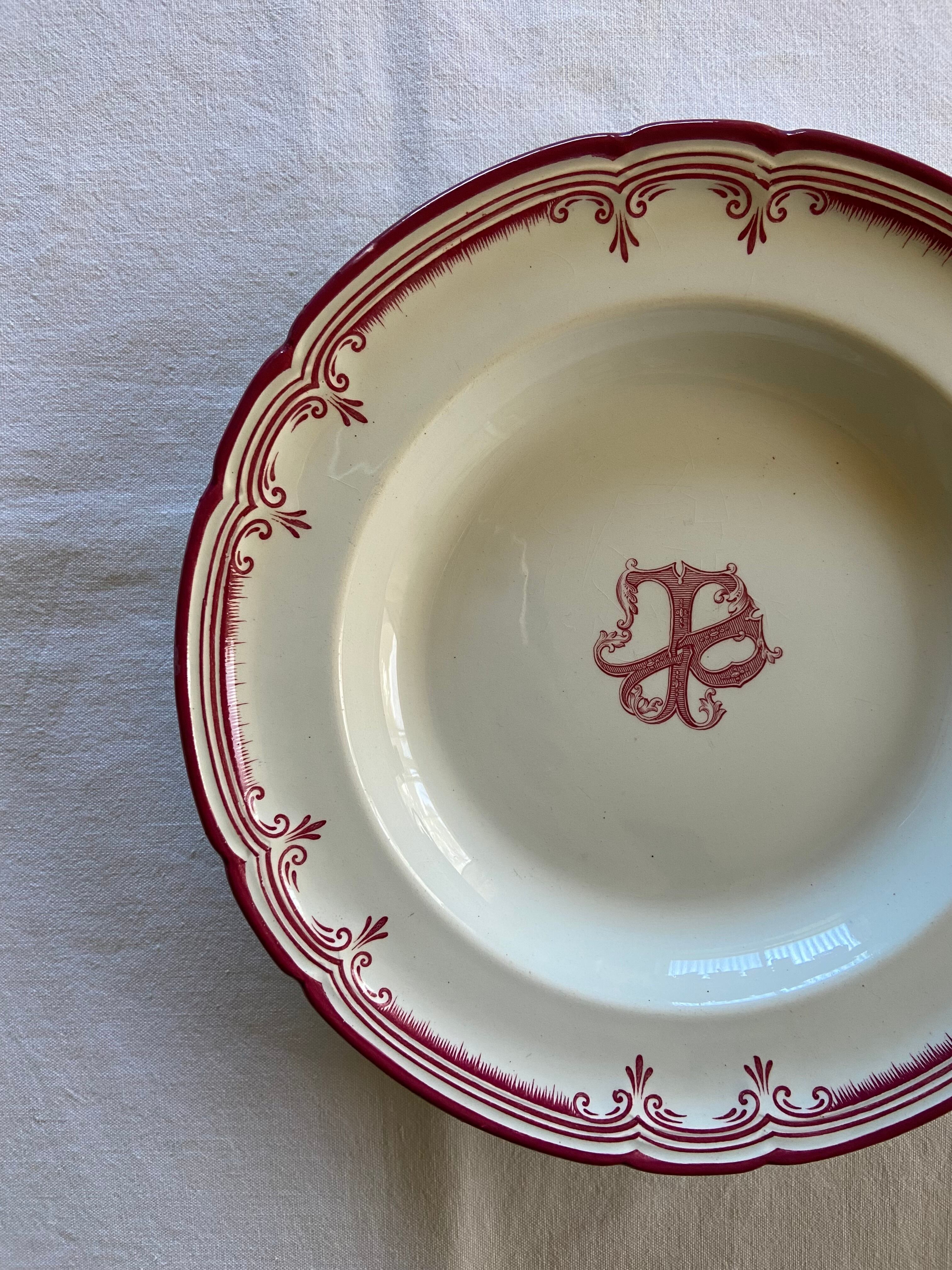 縁のレリーフが美しいクレイユのプレート(中央のモノグラム"TP"がポイント♪)
