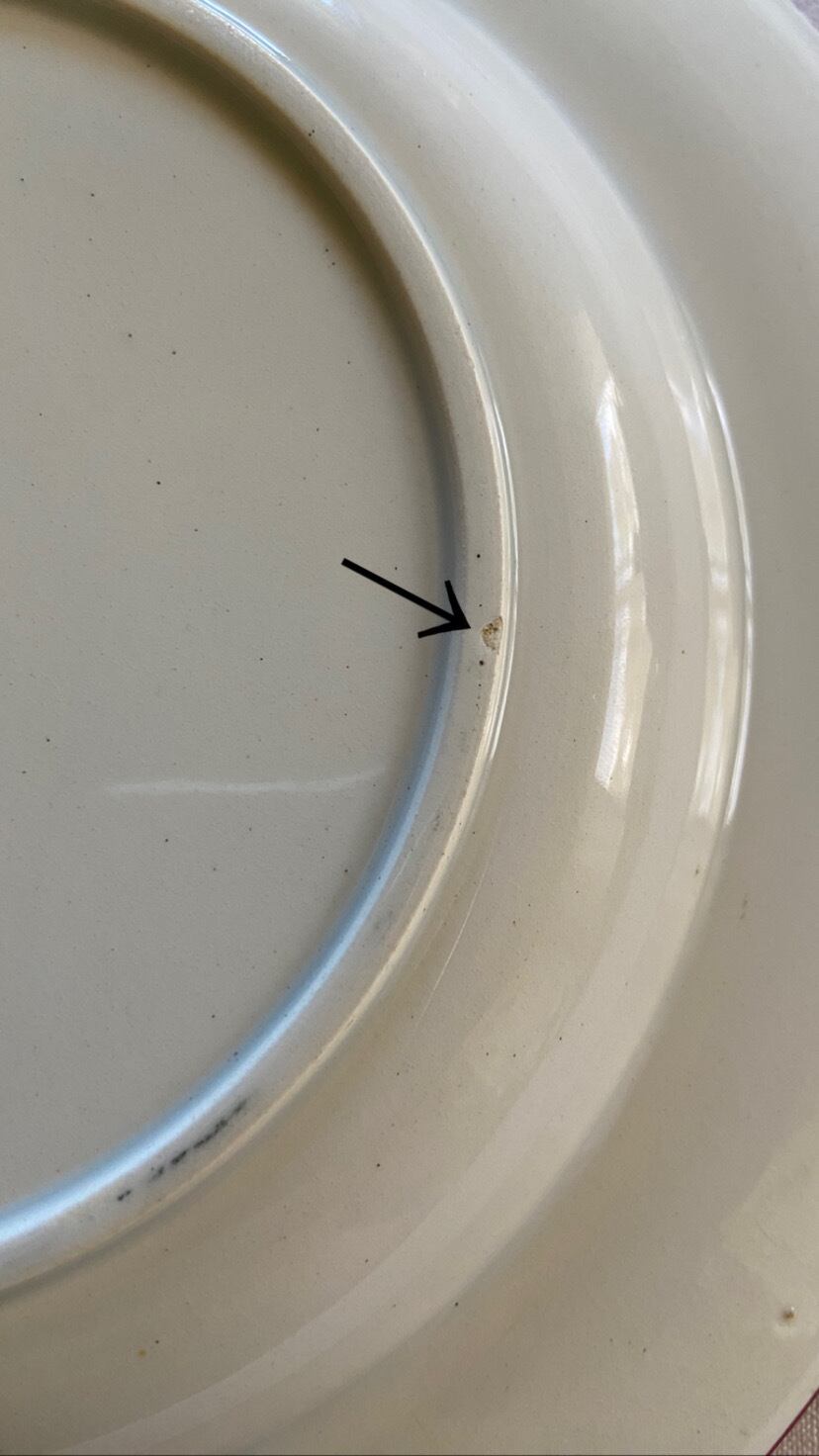 裏側の一部分、広範囲に、小さな黒いポツポツがあります。上から釉薬がかかっていますので、製造時に何かが紛れ込んだものかと思います。