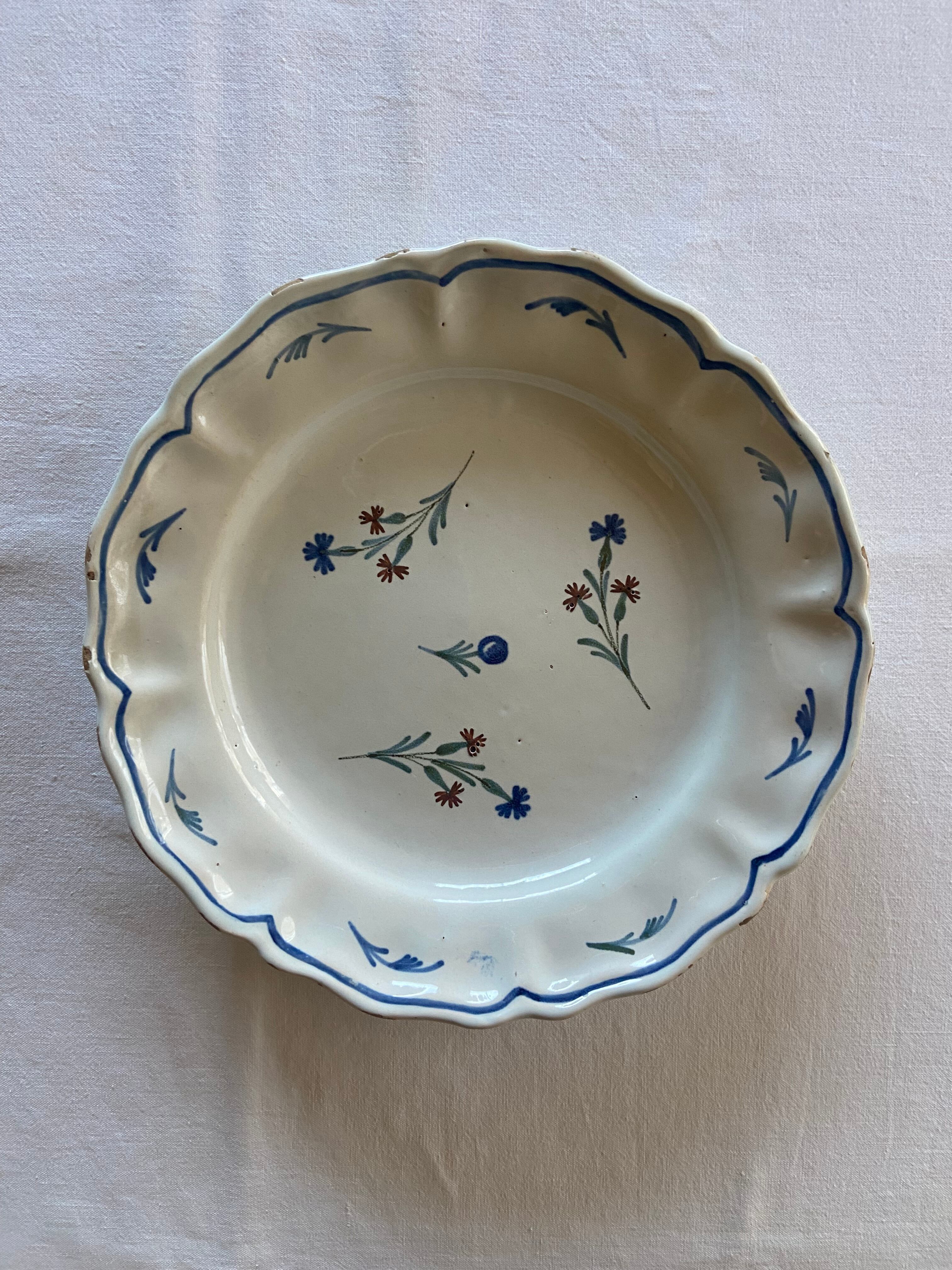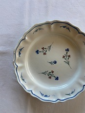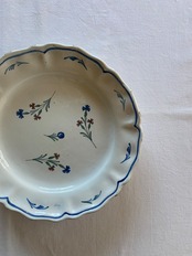 一枚一枚手描きで書かれた小花柄とぽってりとした独特の釉薬が温かみのある一枚です。