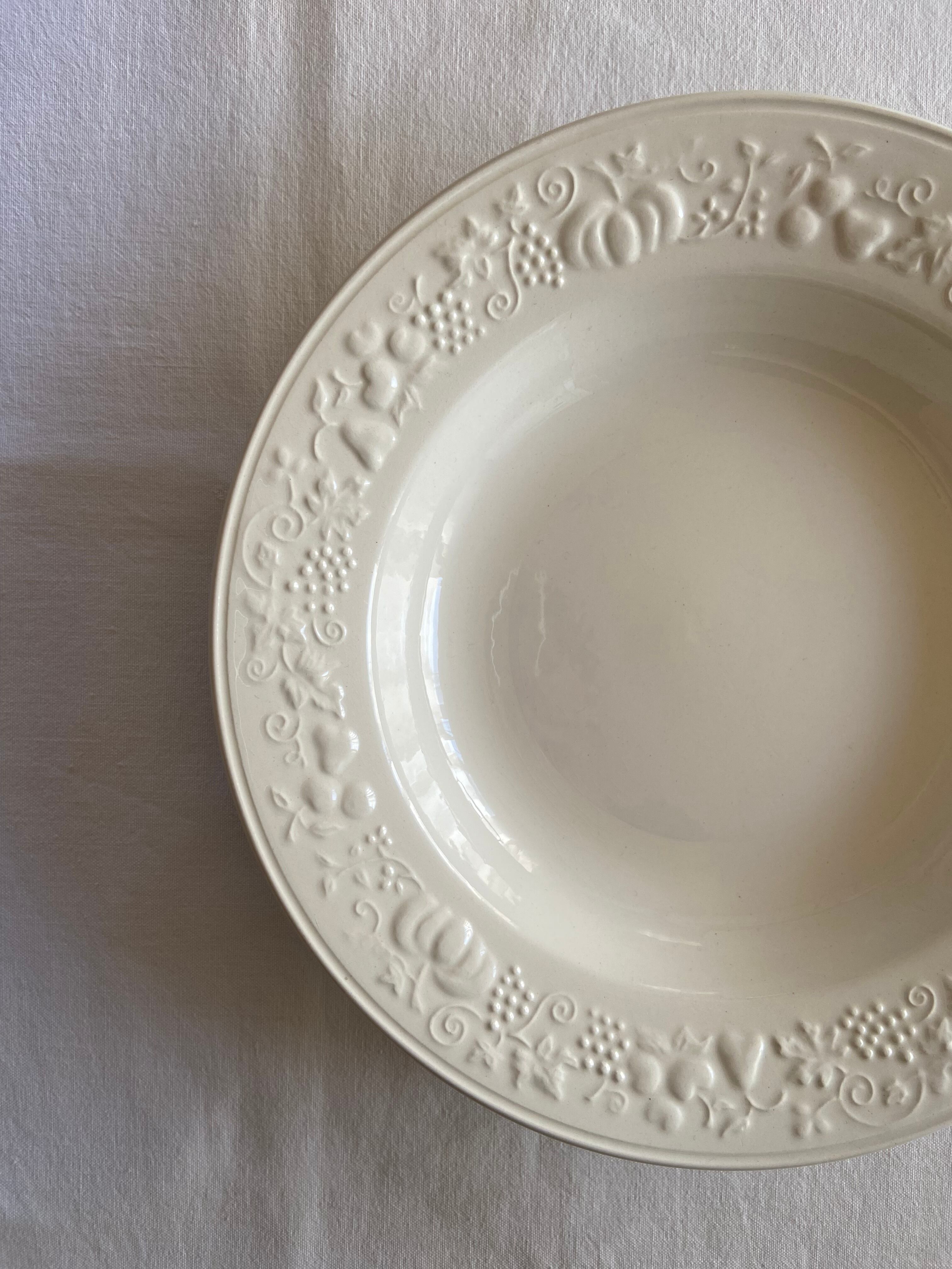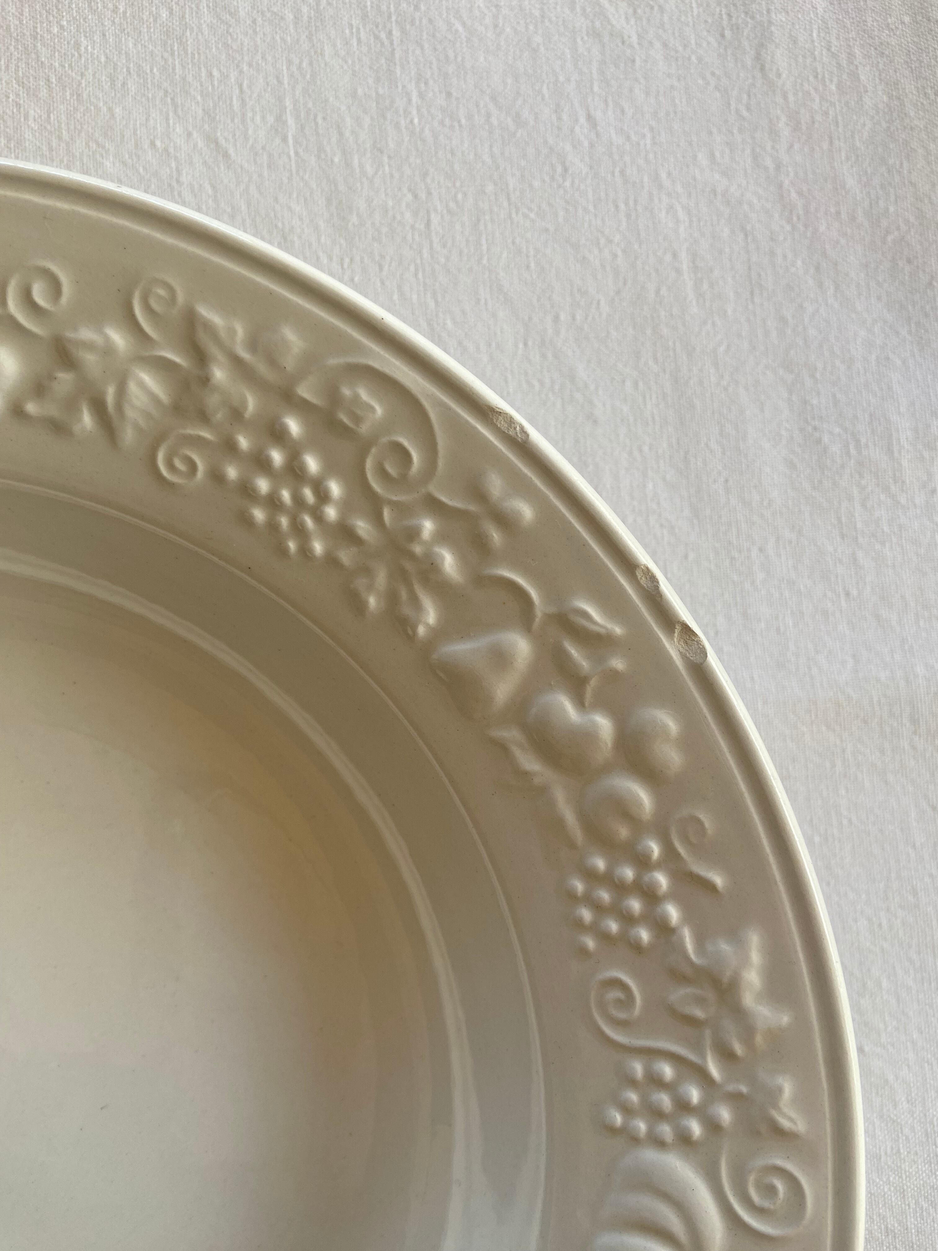 ずらりと並んだフルーツやかぼちゃのレリーフが素敵なサルグミンヌのフランスアンティーク プレートになります。