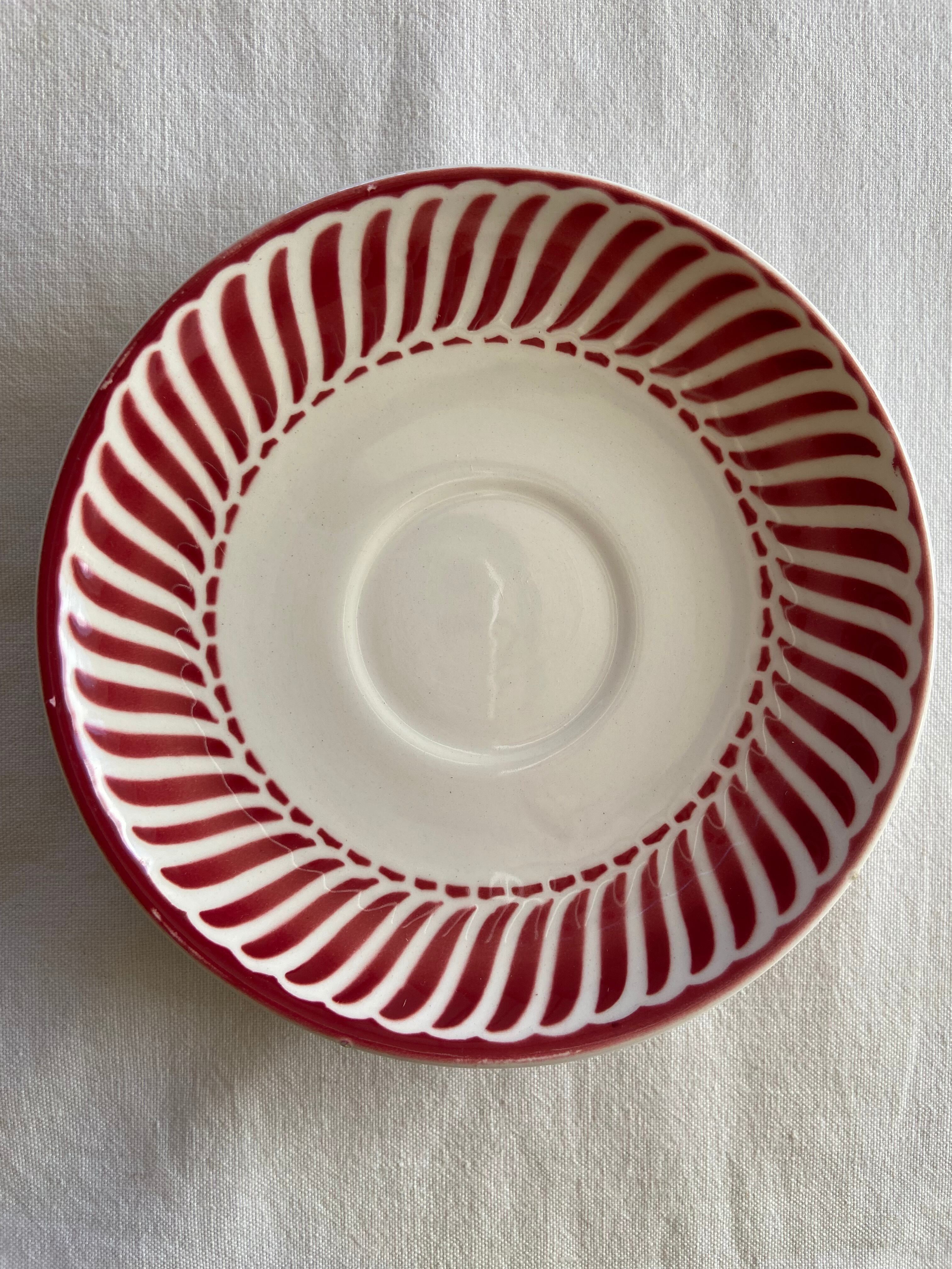 赤いなみなみ模様が特徴のサルグミンヌ、jacquotシリーズのデミタスカップとソーサーのセットになります。
