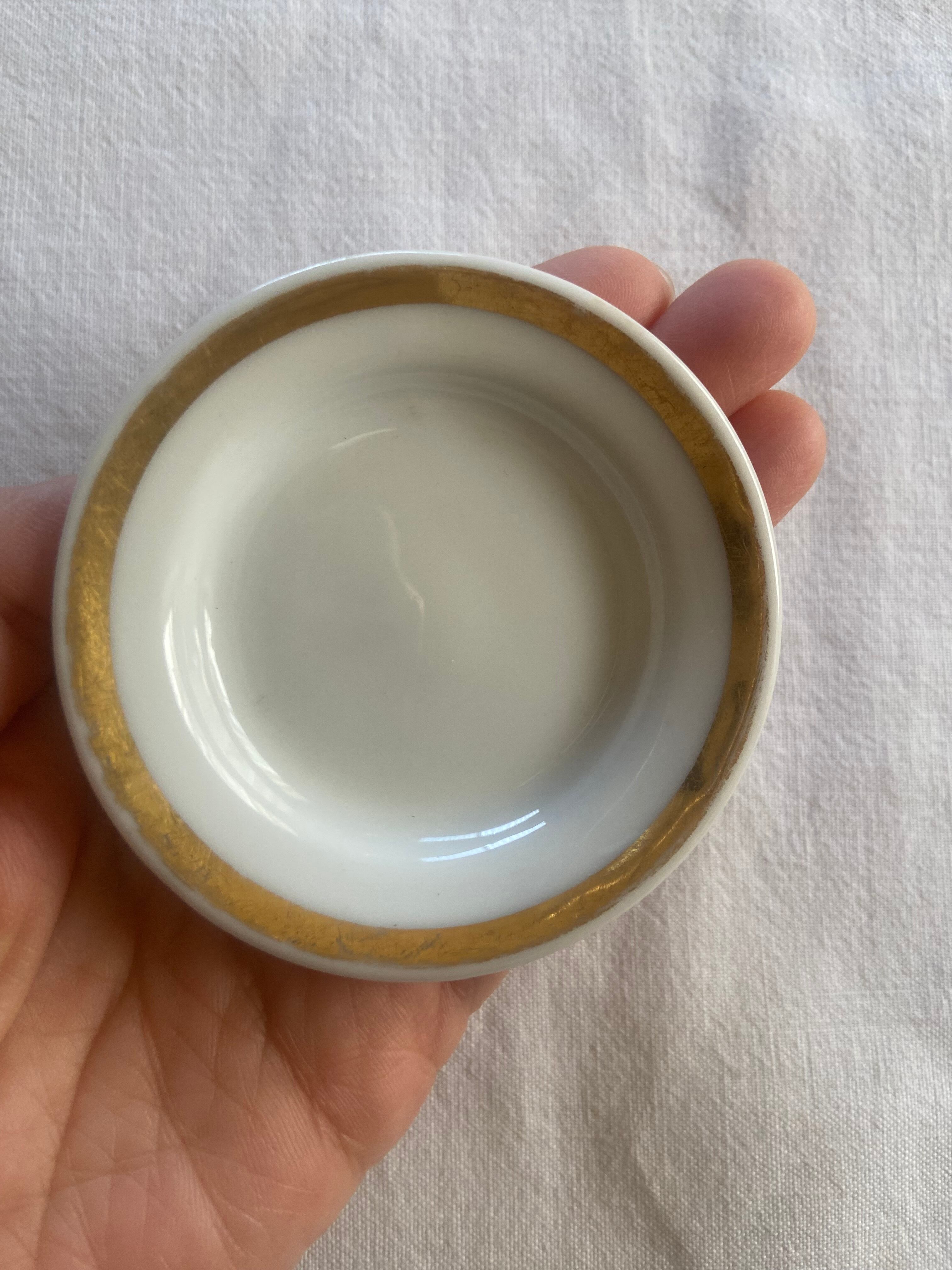 手のひらにすっぽり収まるほどのフランスの小さなおままごと用のお皿(ディネット)になります。