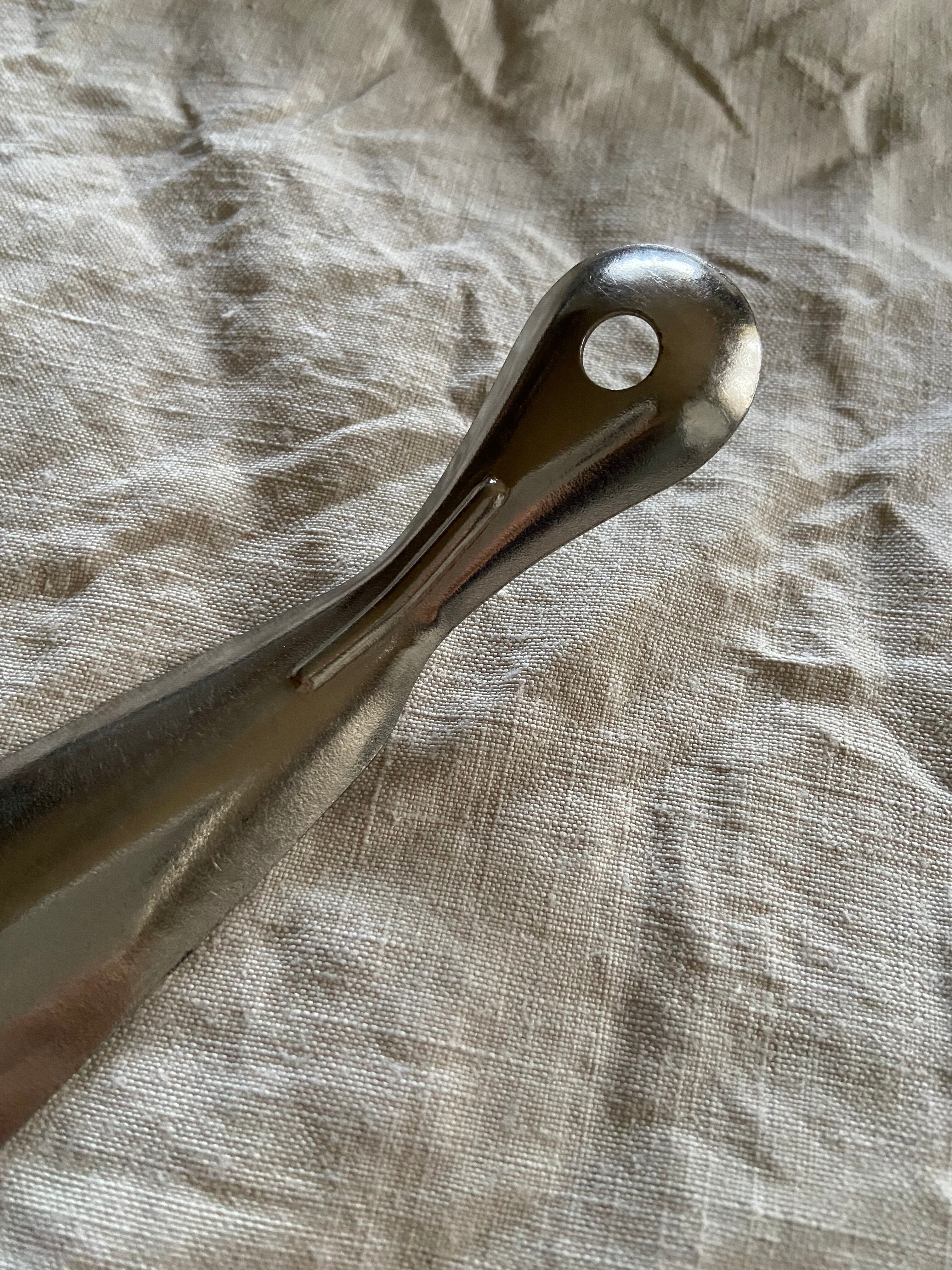 我が家でも数年前に蚤の市で出会った靴べらを玄関の壁の下の部分にかけて使用していますが、このくらいのサイズ感コンパクトで便利です^^