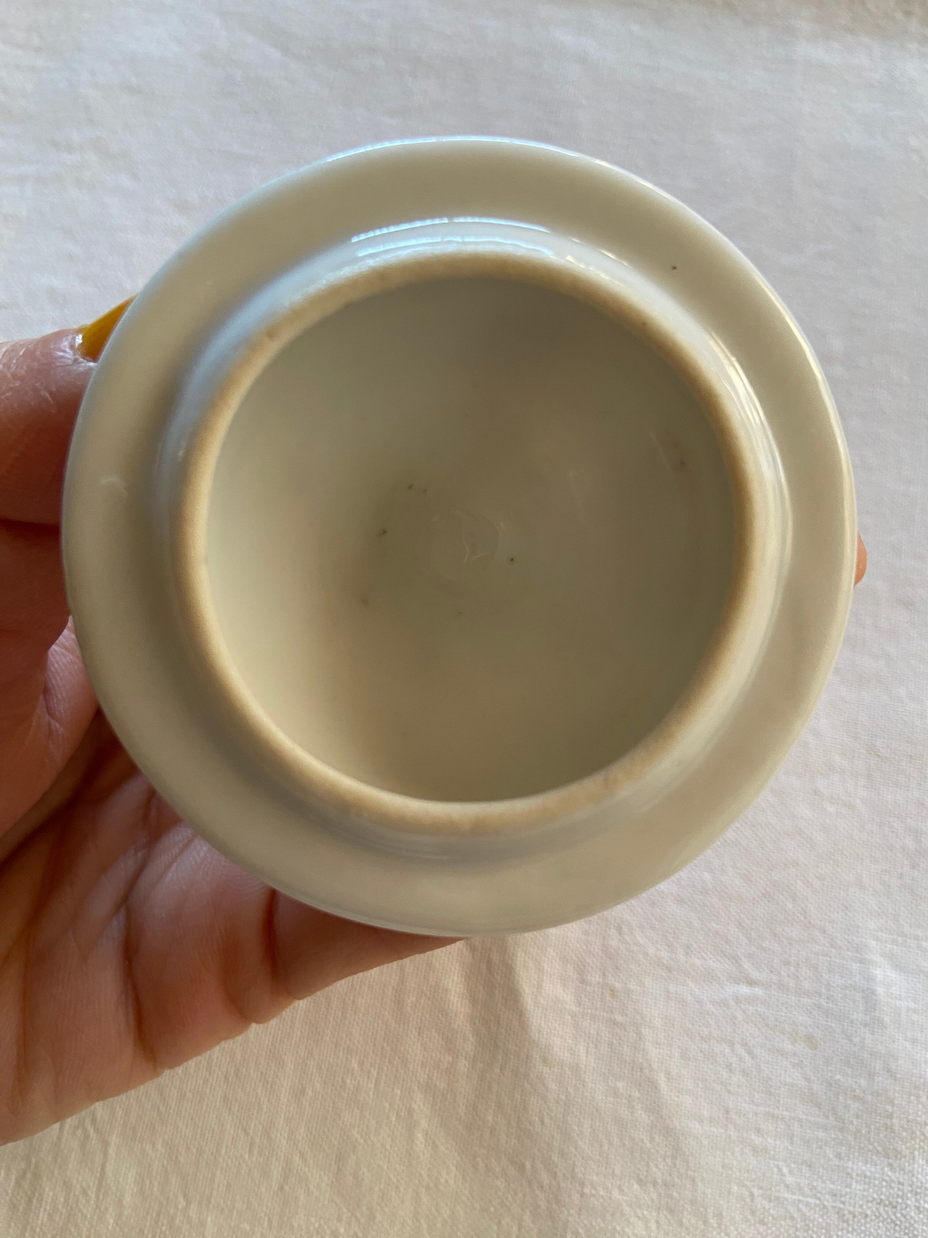 とても可愛いポットなのですが、カップ裏側高台にチップ、本体に3.5cmほどのラインが入っています。
