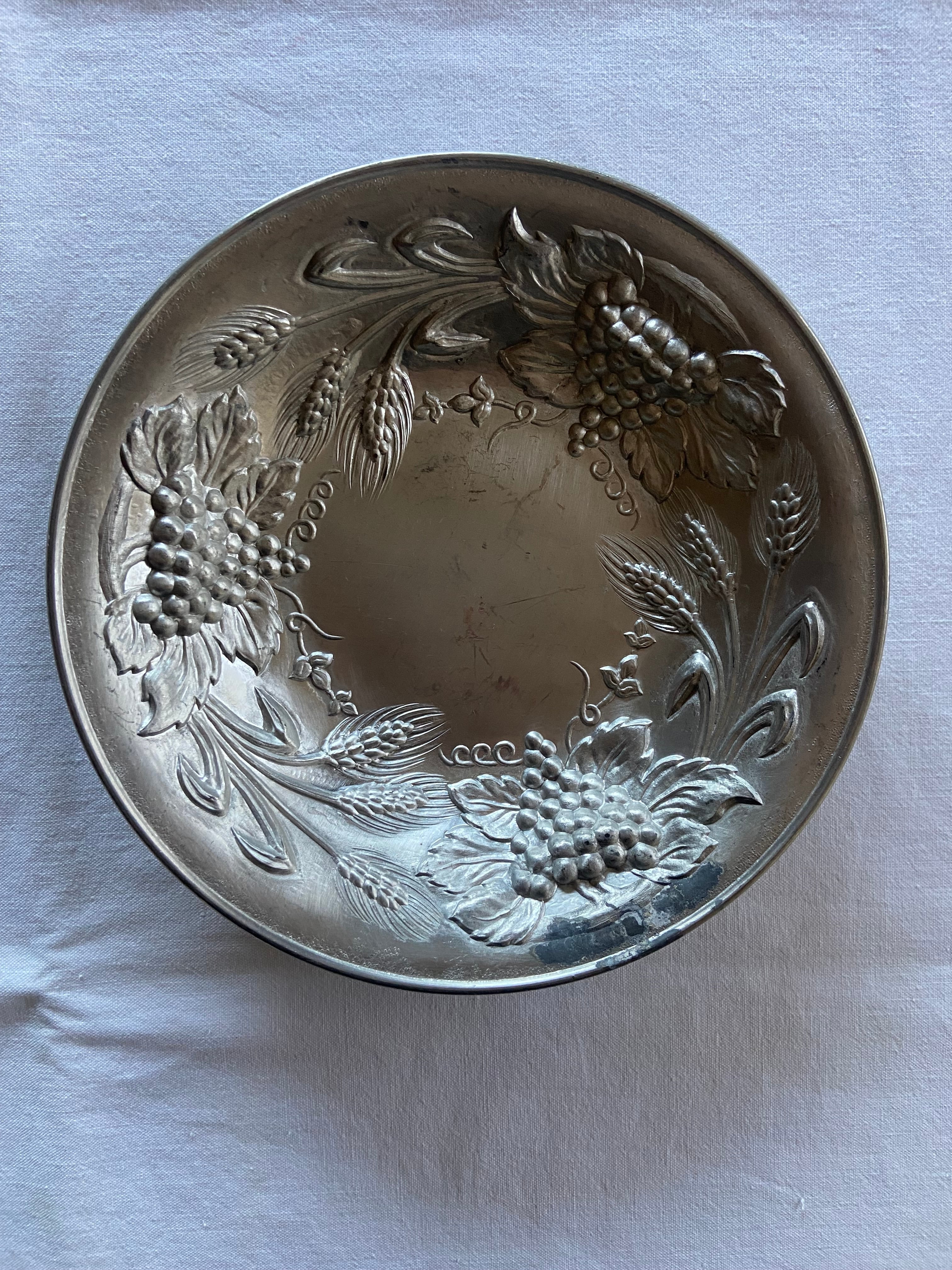 大きな立体的葡萄と大麦がダイナミックなピューターのプレート