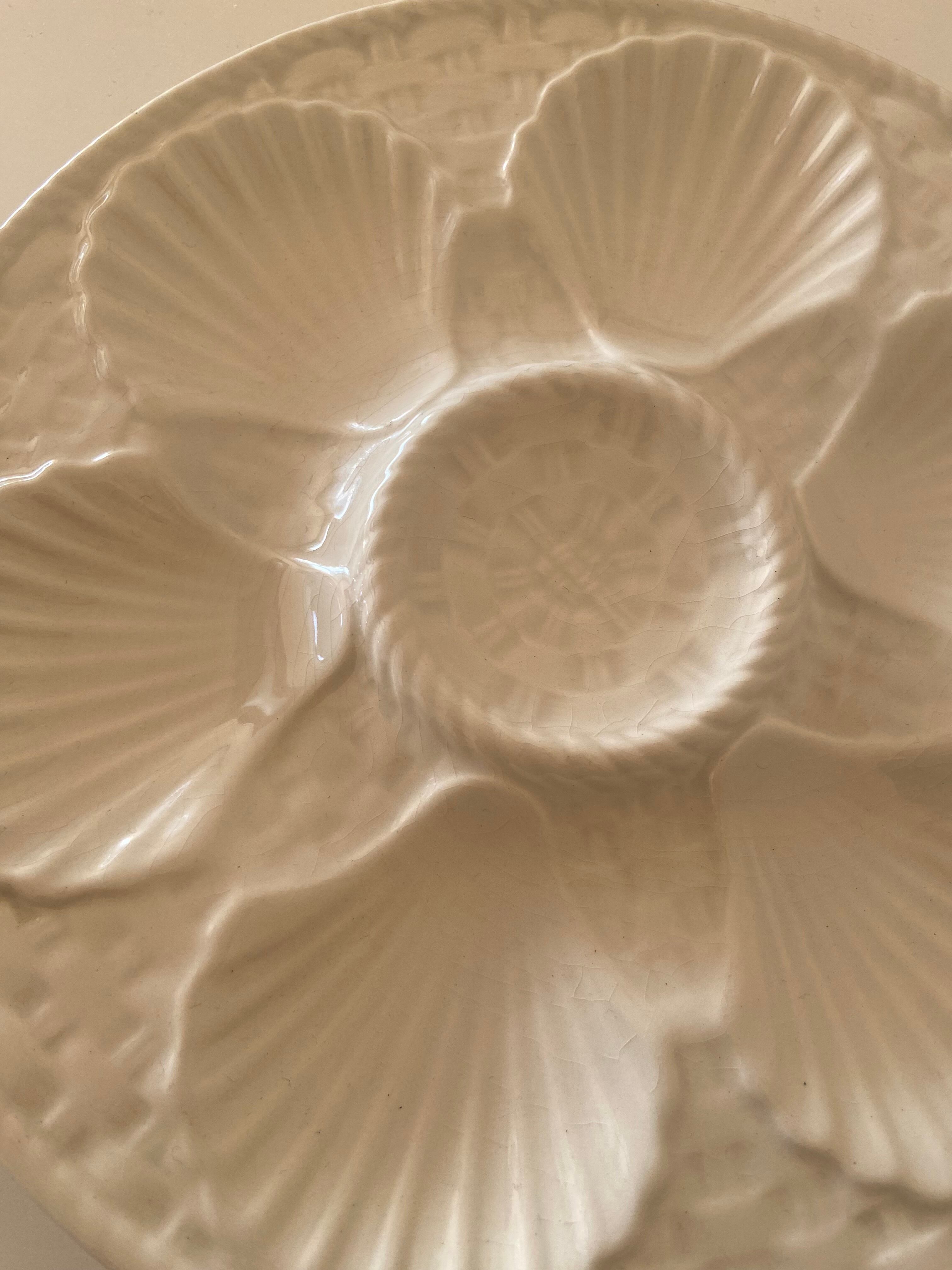 6個牡蠣を置き、真ん中にレモンを置くスタイルのオイスタープレート