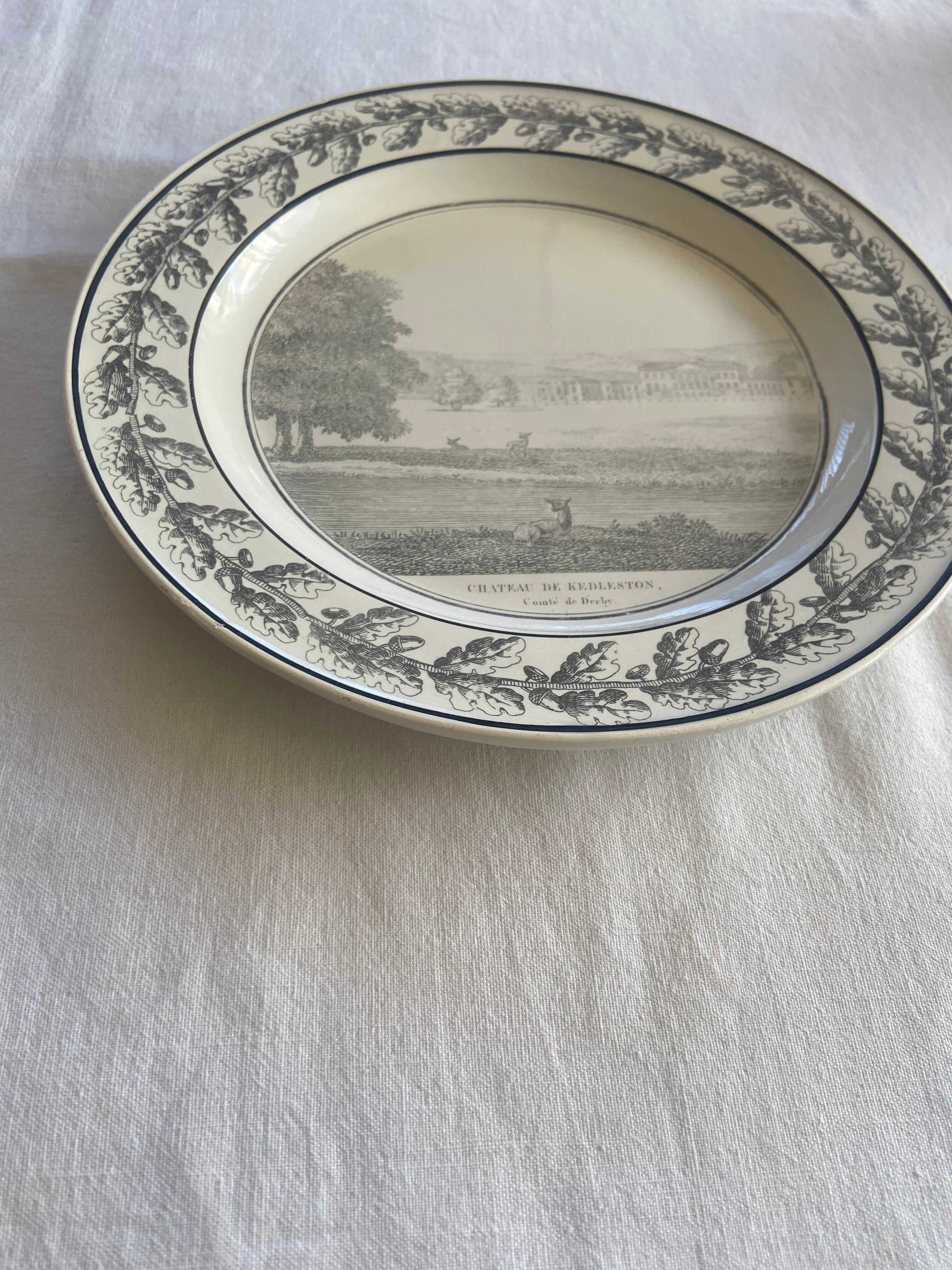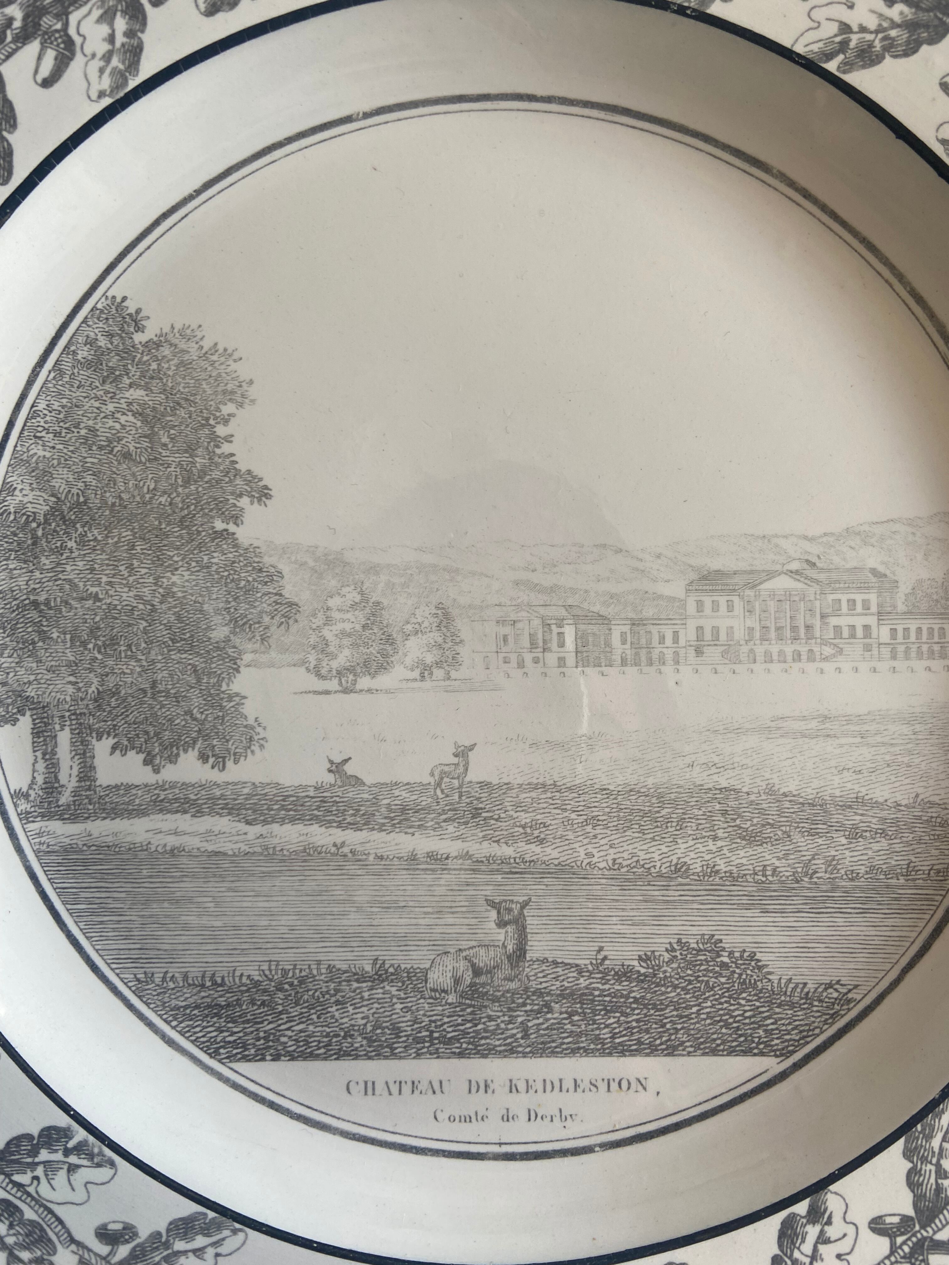 イギリスのダービー郊外にあるケドルストン城が描かれたモノクロのプレート