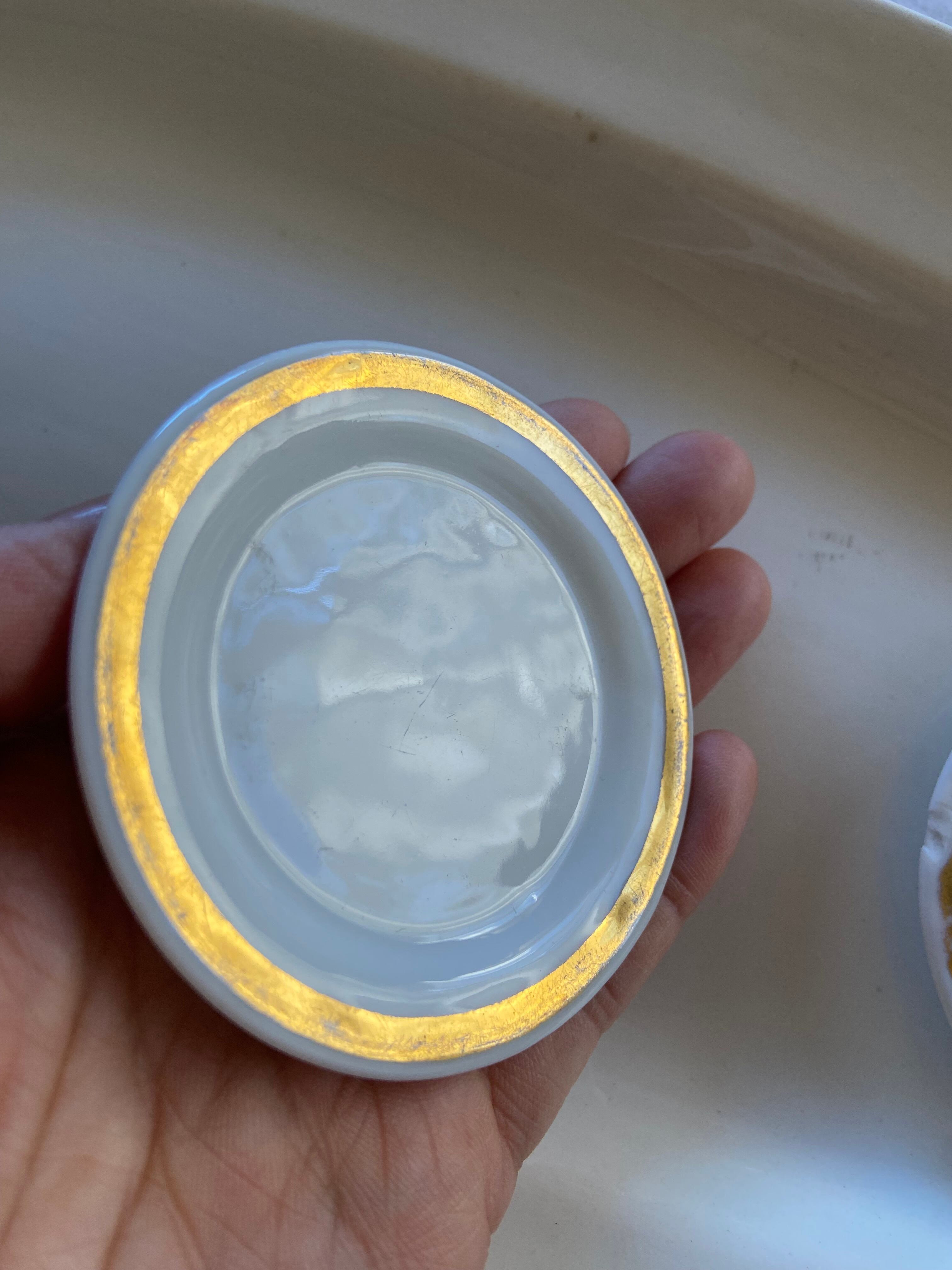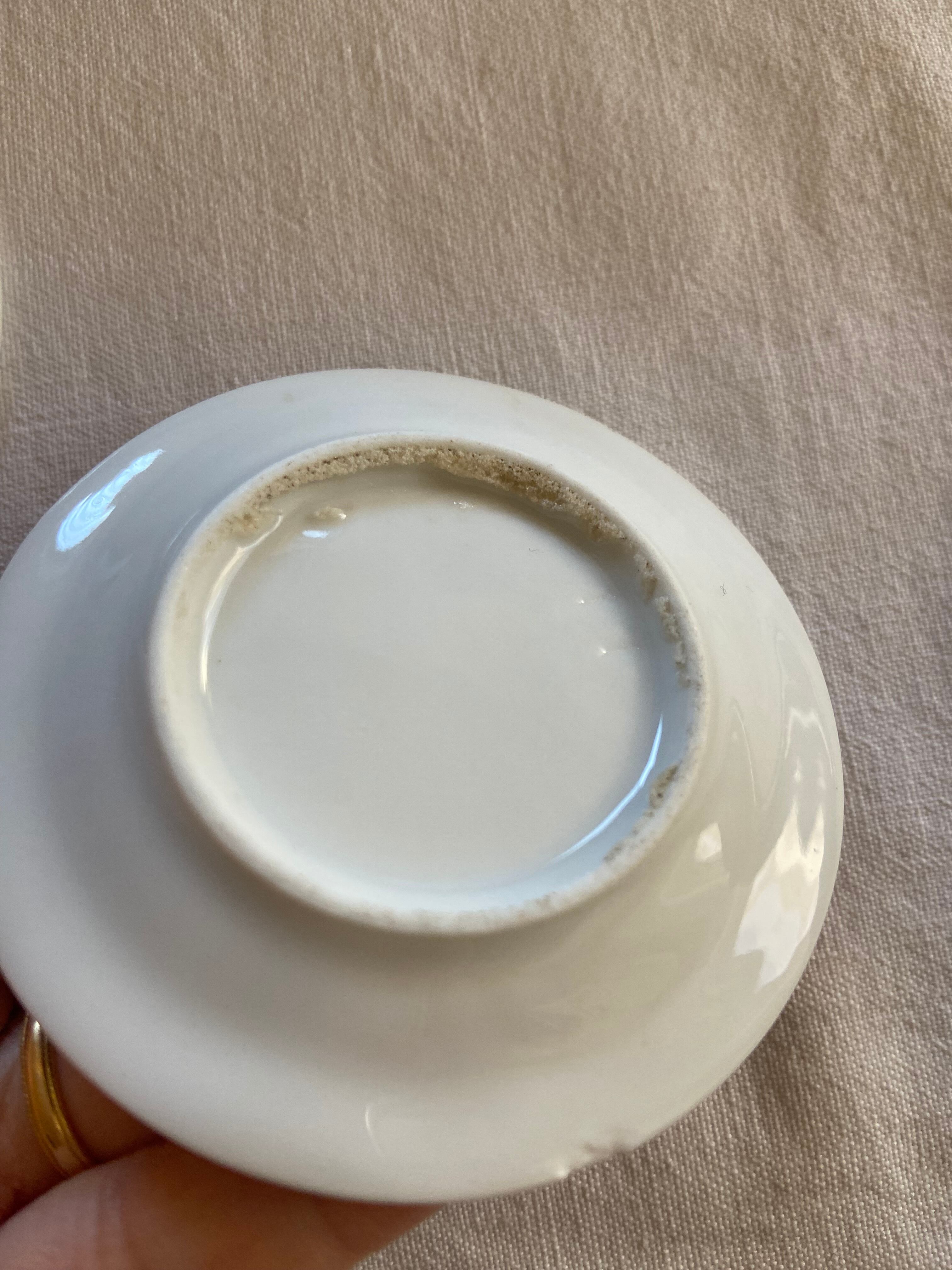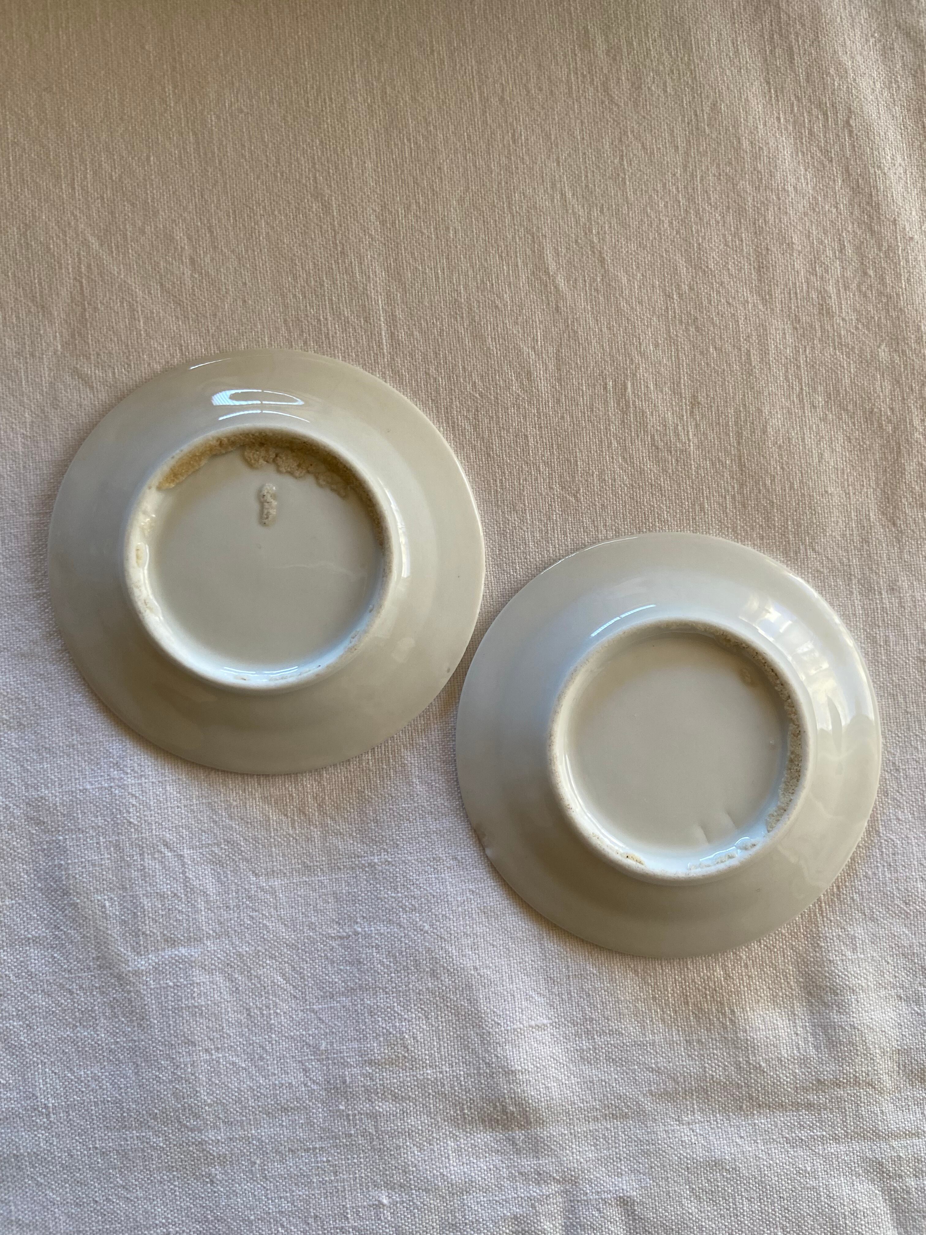 手のひらにすっぽり収まるほどのフランスの小さなおままごと用のお皿(ディネット)2枚セットになります。