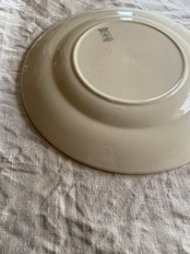 縁にチップが1箇所あります。そのチップの一部が近くにくっついていて、上から釉薬がかかっています^^