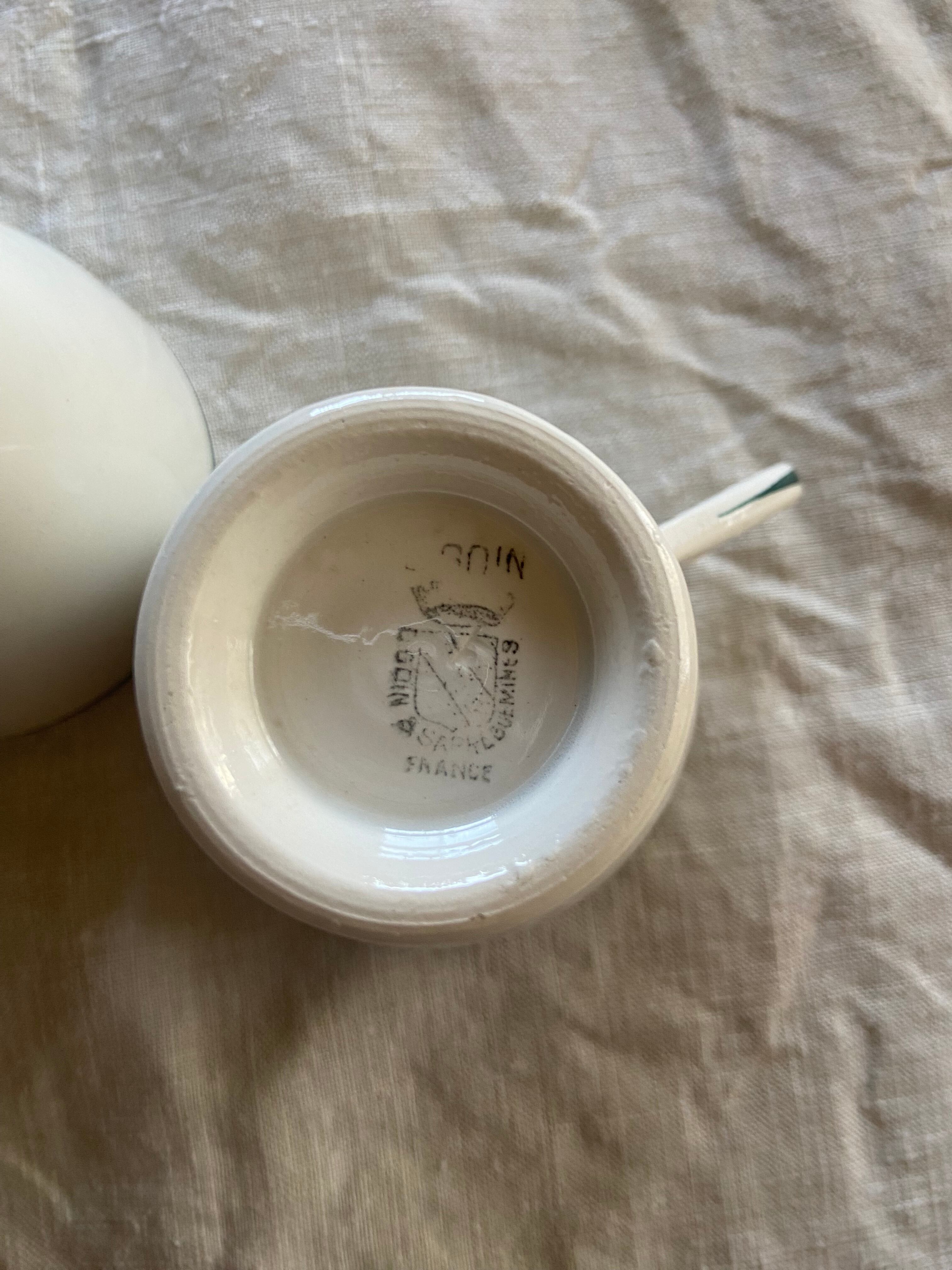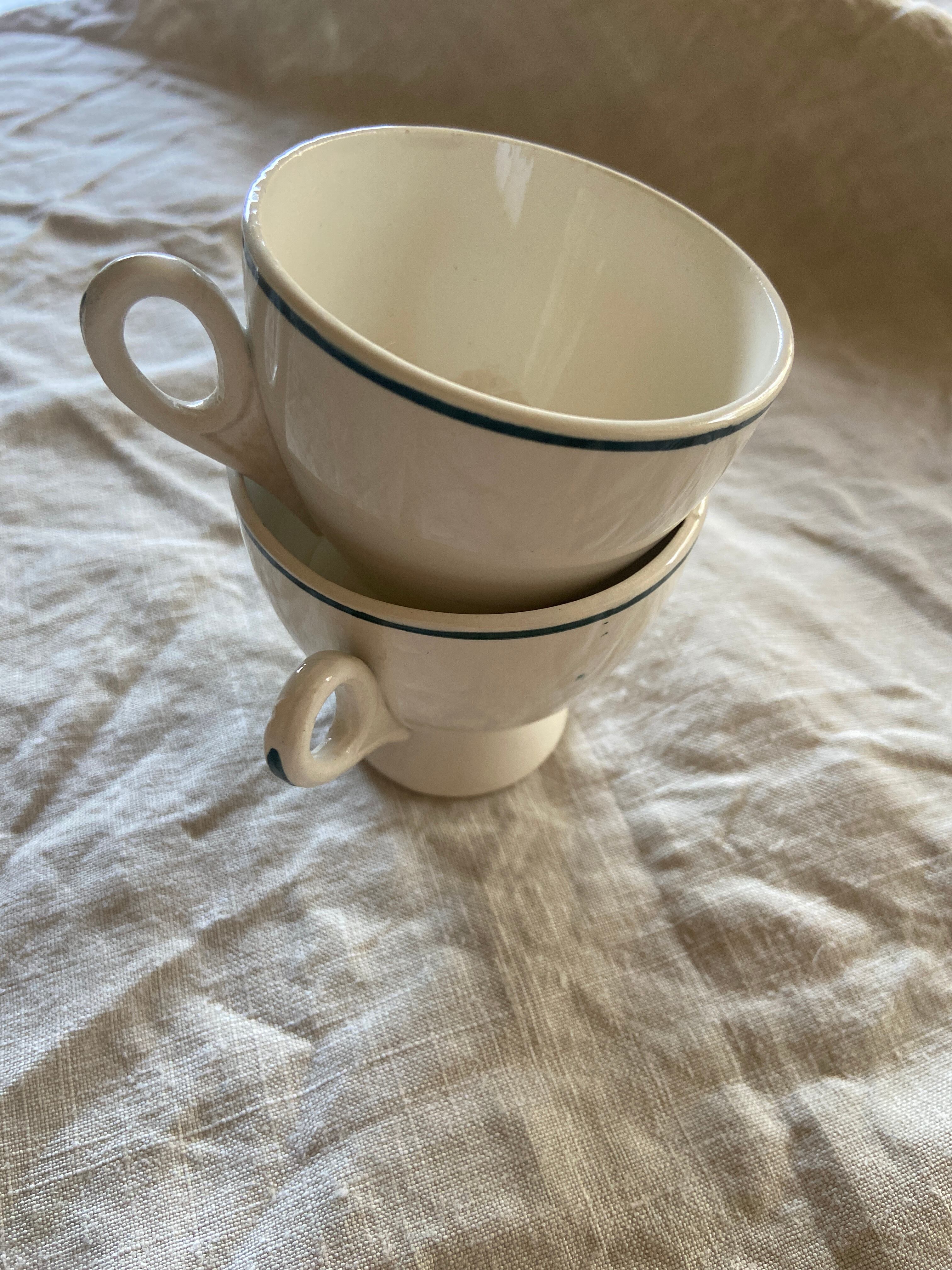 シンプルながらもかわいい持ち手や、脚、細いグリーンのラインなど特徴的なカップ
