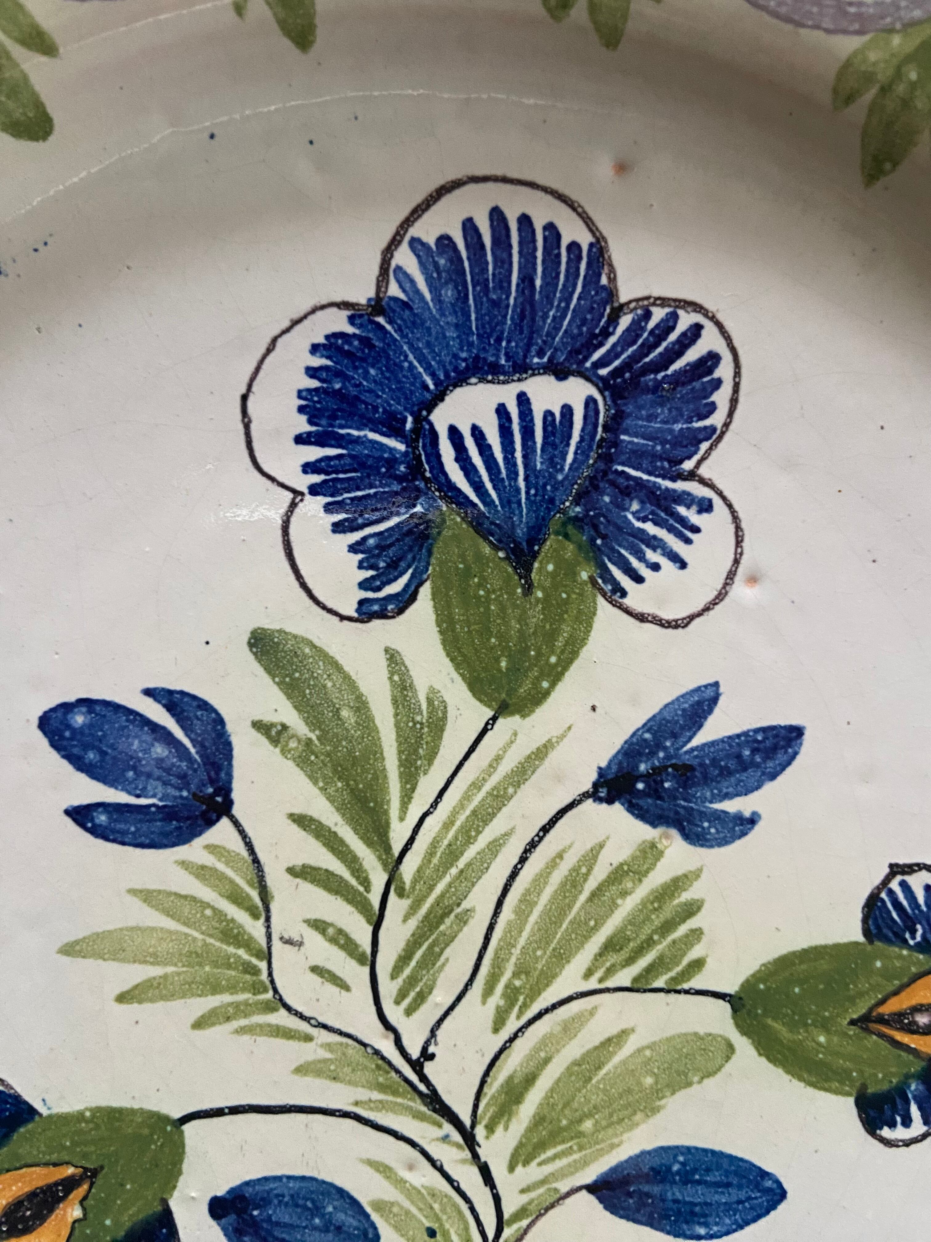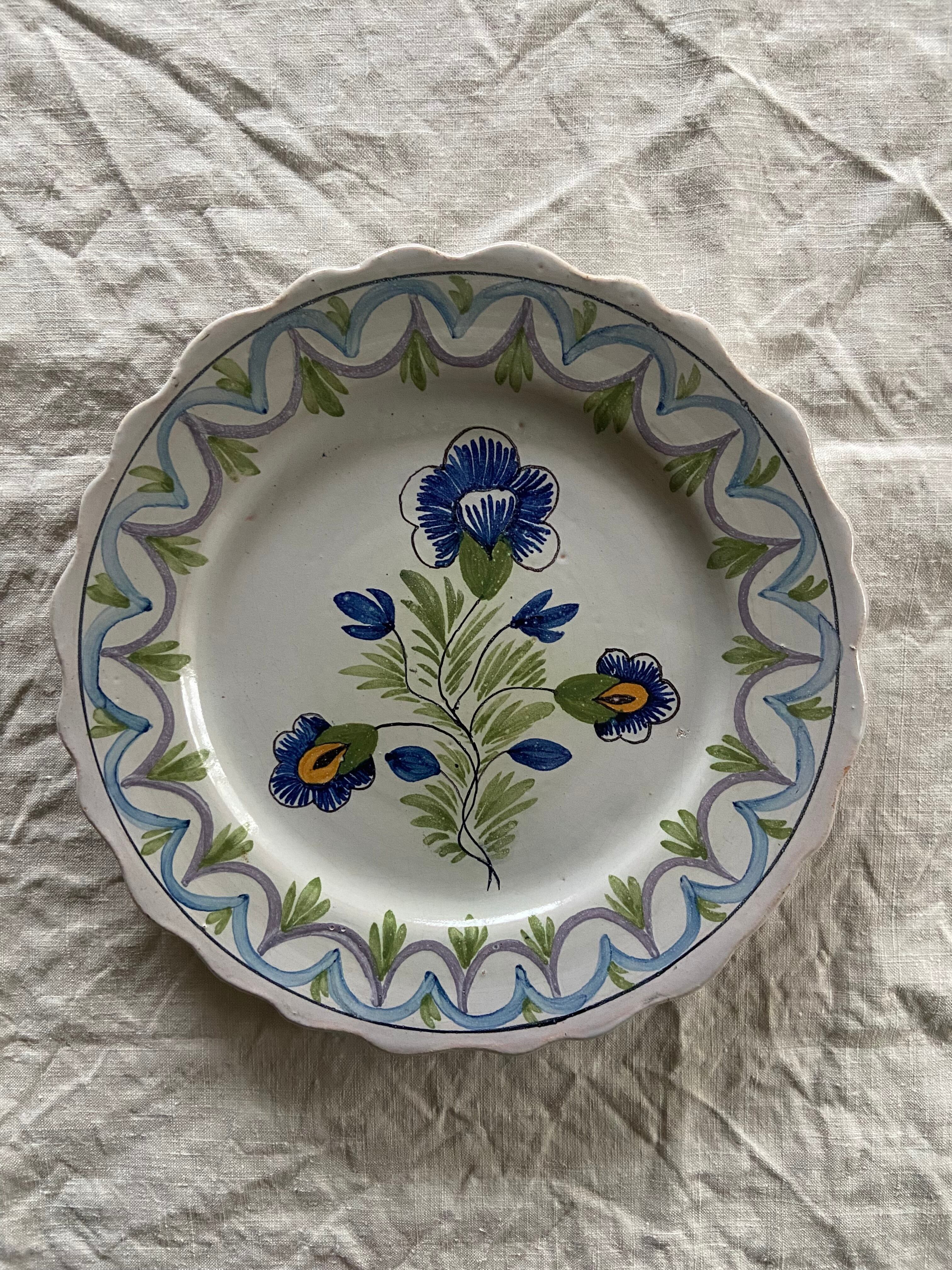 ダイナミックなブルーのお花皿 フランスアンティーク