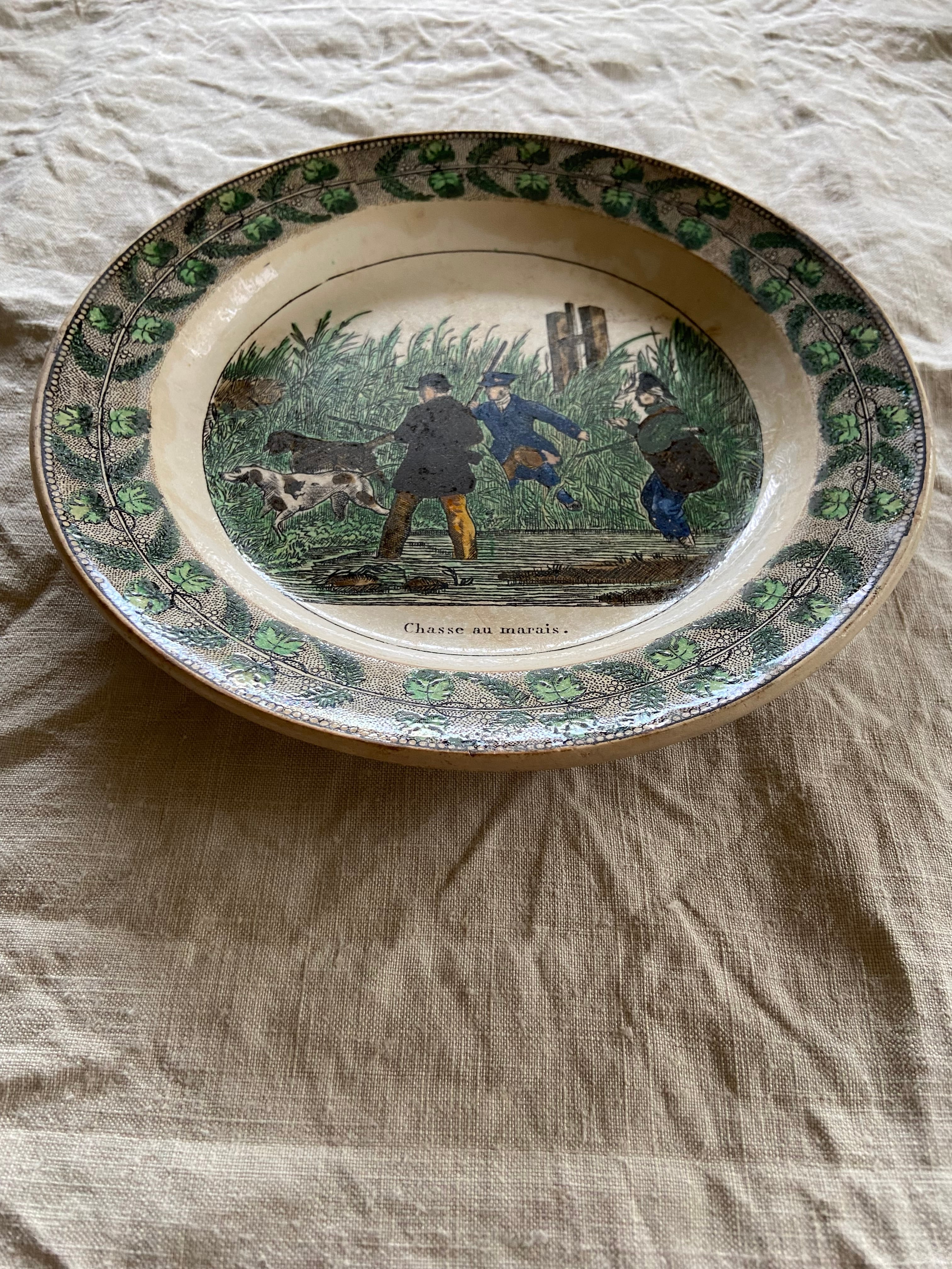 使い込まれたモントロー 狩猟プレート フランスアンティーク