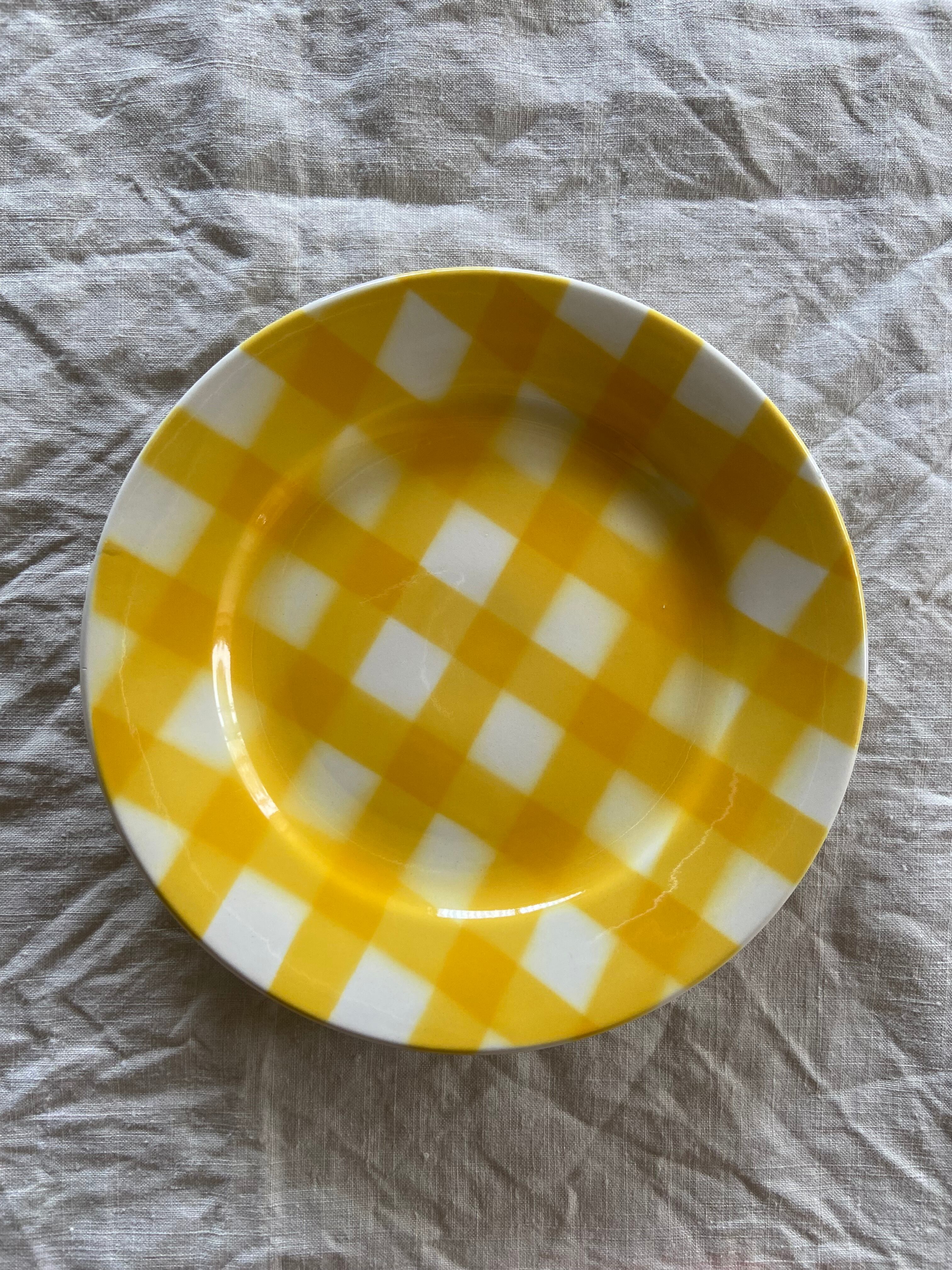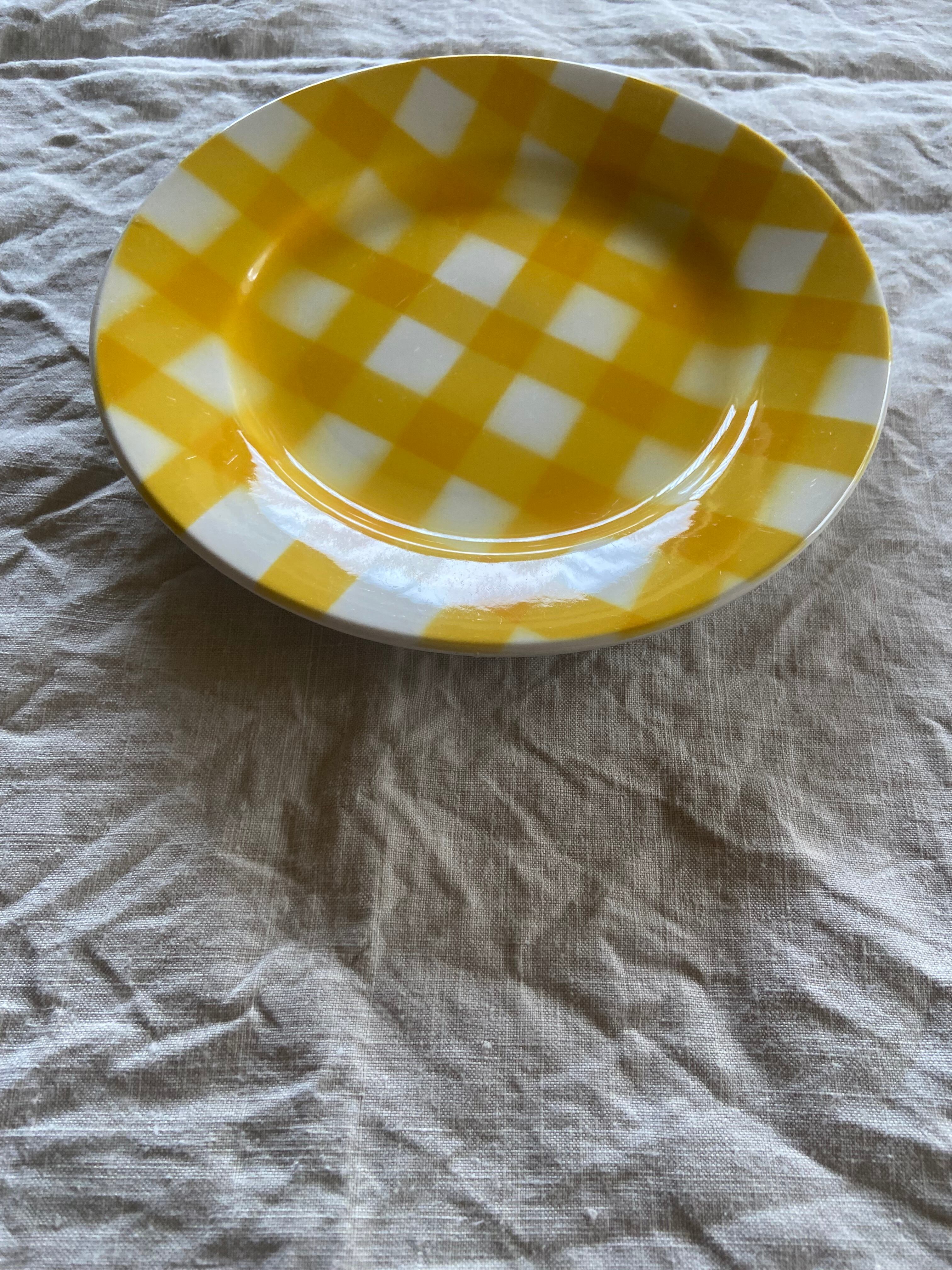 黄色いチェックの平皿 sarreguemines フランスアンティーク