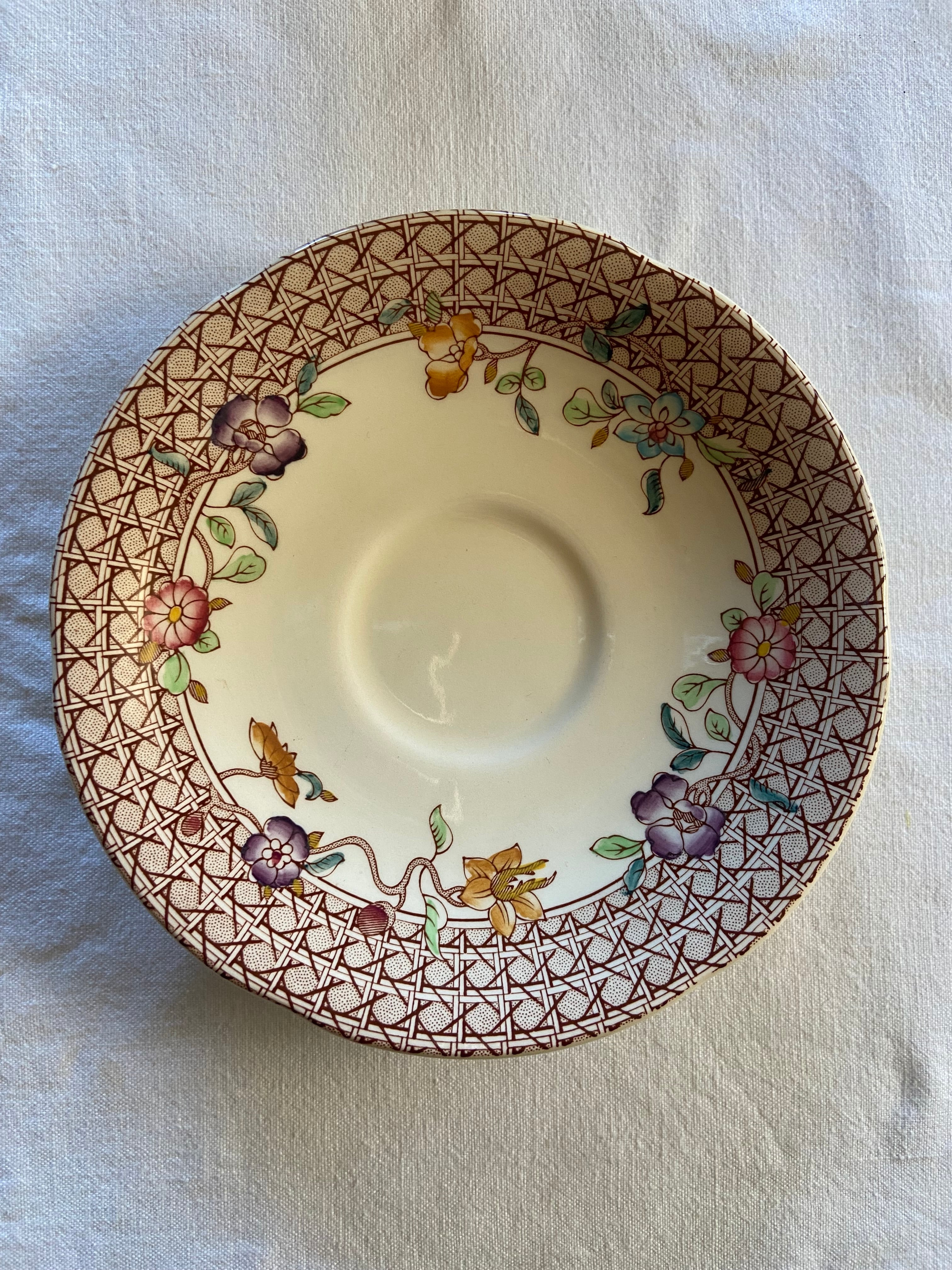 可愛いお花がカップやお皿のリムをぐるりと囲んでいます。