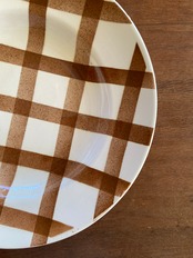 茶色のチェックが斬新なスープ皿